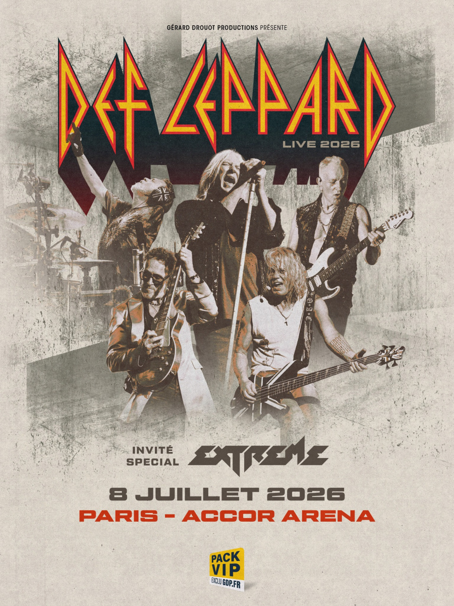 8. července 2026 se Def Leppard po více než 30 letech vrací do Paříže! Toto datum si pařížští fanoušci nenechají ujít ani za nic na světě! Je jen jeden způsob, jak ho zažít: vpařížské Accor Areně. Jako speciální hosté jsou ohlášeni američtí rockoví Extreme!