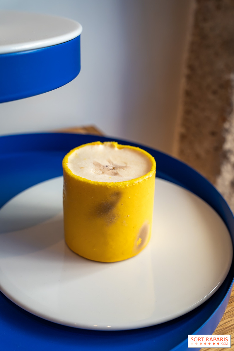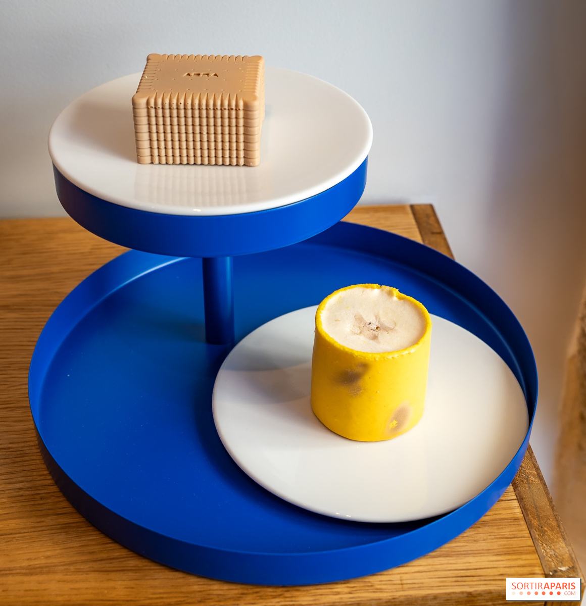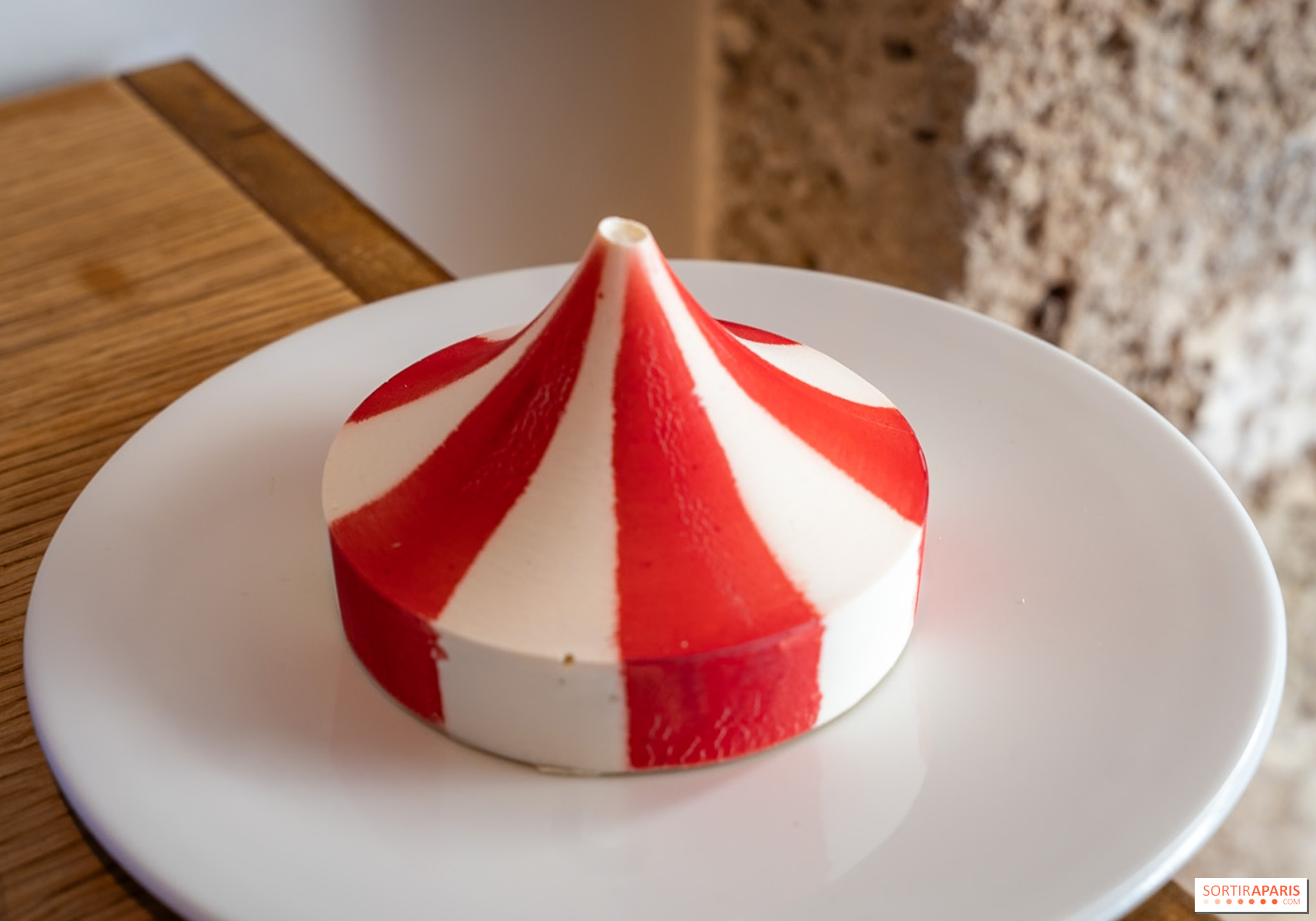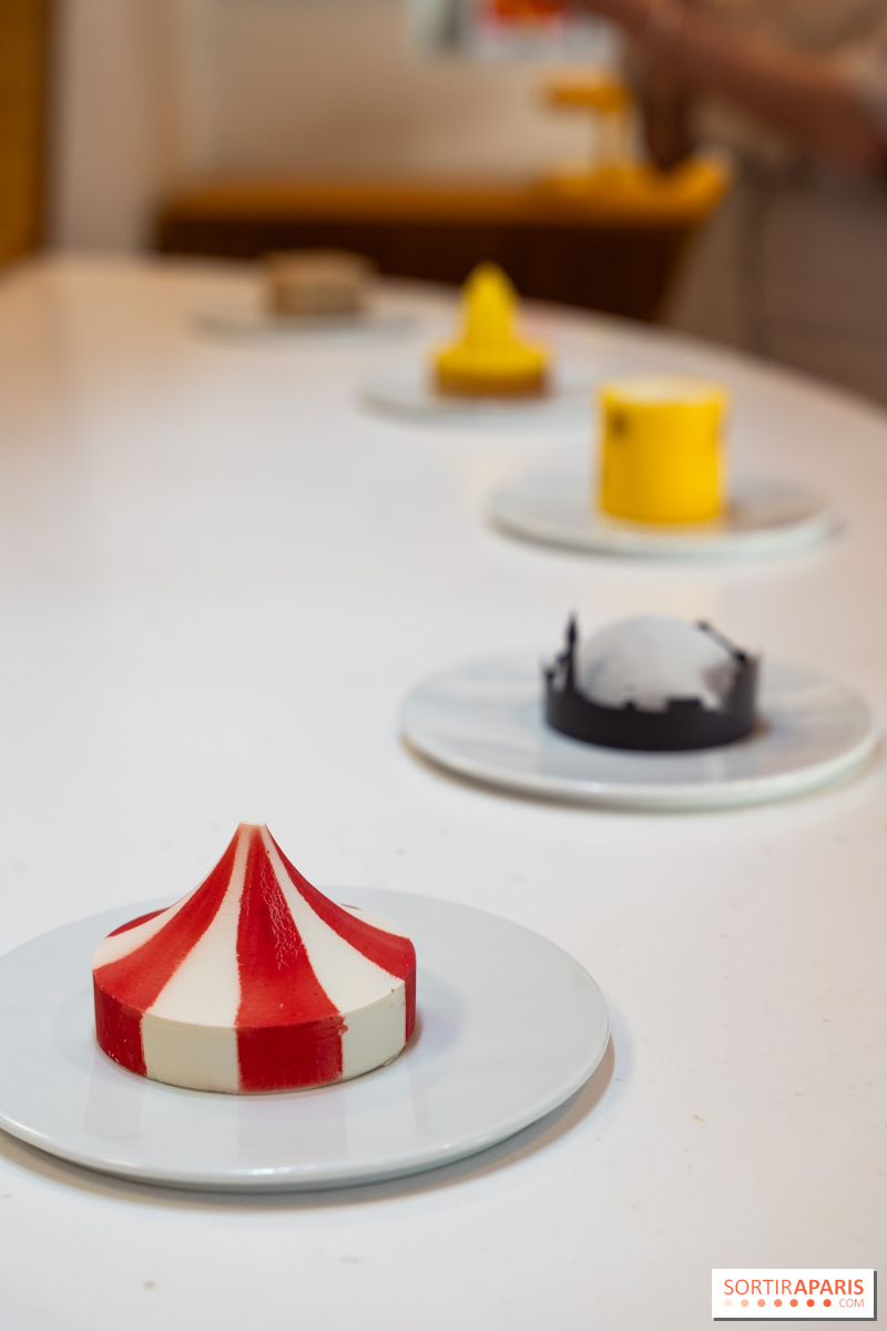 Výtvory jsou stejně jako šéfkuchař odvážné a grafické. Citronový koláč má podobu žlutého lisu na citrusy, Petit Beurramisu kombinuje Petit Beurre a tiramisu, dobrý tonka a makový flan a dezert Půlnoc v Paříži s oříškovým panoramatem je poklonou Woodymu Allenovi. Nám se líbila cirkusová kopule s příchutí popcornu a karamelu. V nabídce nechybí ani vínovice, sušenky, čokoládové tyčinky a kávové speciality.