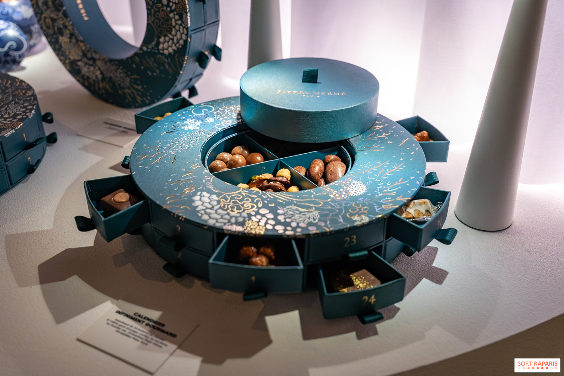 Kalendář Infiniment Gourmand za 95 € (500 g) přidává krabičku lahůdek, do které se můžete pustit již v listopadu, což je ideální pro netrpělivé. Skutečným klenotem je však kalendář Calendrier d'Exception za 185 € (950 g). Obsahuje ručně vyrobenou vánoční kouli od Courtney Mattison z glazovaného porcelánu s reliéfy, které napodobují korálové útesy, a se zlatým dotekem. Každý kus je jedinečný, číslovaný a v limitované edici. Dárek, který zůstane i dlouho po tom, co čokolády zmizí.