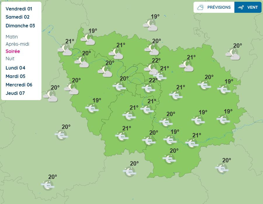 Der forventes kun få ændringer søndag den 3. august. Mens den klare himmel forventes at dominere om morgenen, er der udsigt til meget skyet himmel om eftermiddagen og skyet himmel om aftenen. Men igen er der ikke udsigt til regn eller byger. Men hold øje, da situationen kan ændre sig igen i de kommende timer. Hvad angår temperaturerne, forudser Météo France tæt på 20 °C om morgenen, 24 °C om eftermiddagen og 22 °C om aftenen.