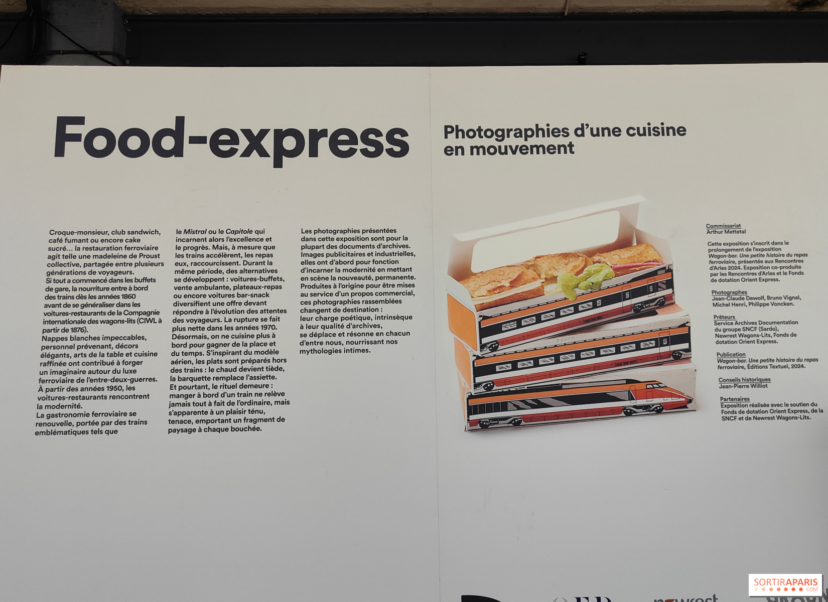 Fra 10. juli til 5. oktober 2025 præsenterer Ground Control Food-express - Fotografier af et køkken i bevægelse, en udstilling, der følger op på"Wagon-bar. Une petite histoire du repas ferroviaire", som blev præsenteret på Rencontres d'Arles i 2024. Denne udstilling i Paris samler en række industrifotografier, reklamer og plakater samt arkivbilleder fra midten af det 20. århundrede og frem til i dag. I takt med at årtierne går, og reklamebillederne dukker op, kan vi se, hvordan brugen udvikler sig.