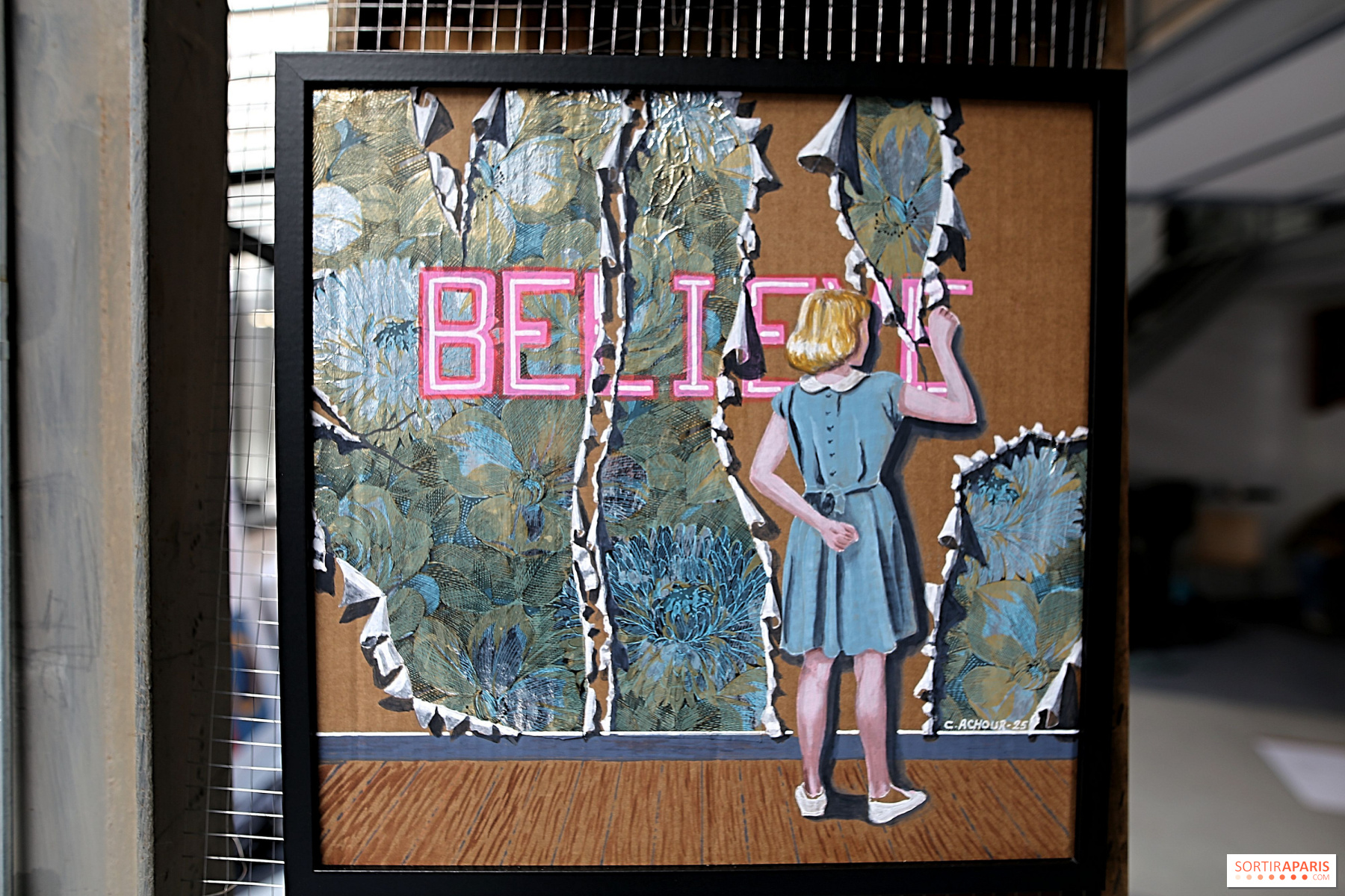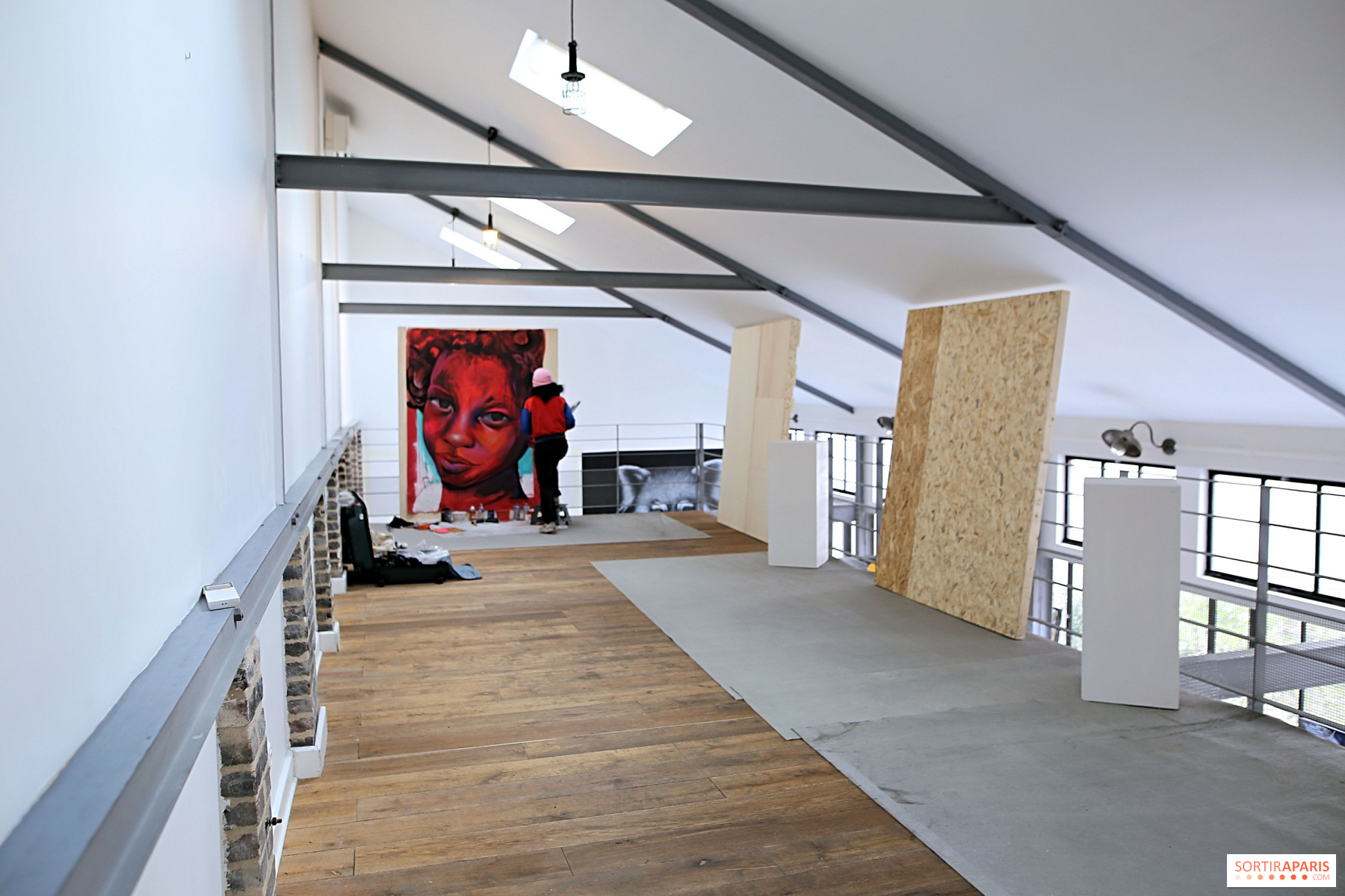 Inden åbningen for offentligheden havde vi mulighed for at opdage lokalerne, forberedelserne til denne helt nye salon samt de første værker, der er skabt på stedet, og dem, der udstilles i denne anledning. For at komme dertil krydser vi gården i N°35 Quai d'Anjou. For enden til venstre åbner vi døren og opdager de første fresker, der stadig er under udarbejdelse.