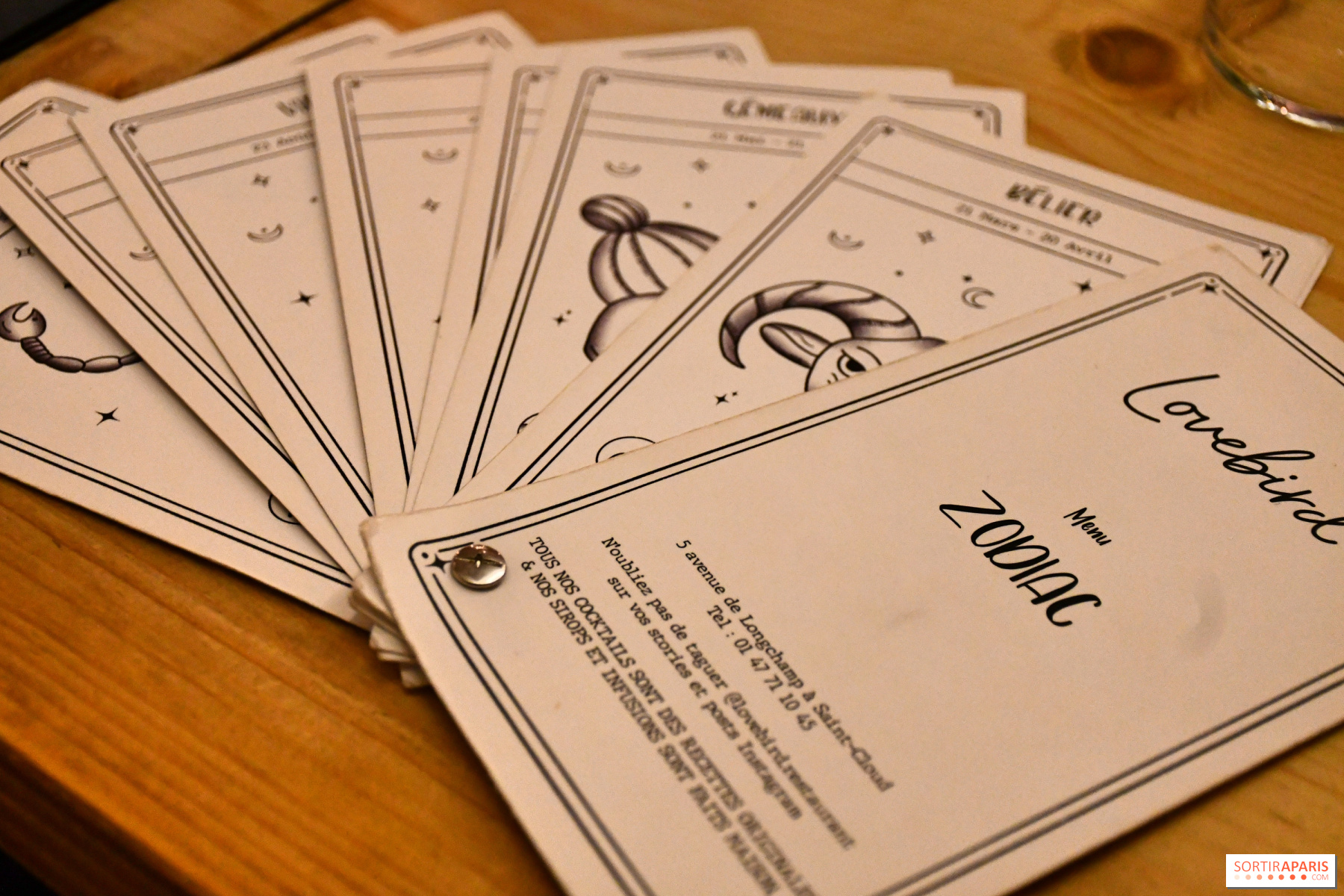 Konceptet kan virke bekendt for nogle, og det er helt normalt: Den første restaurant lå oprindeligt i det 17. arrondissement i Paris. Restauranten flyttede derefter til Saint-Cloud til et større, men stadig lige så hyggeligt sted. Til sine astrologiske cocktails har Camille, ejeren af stedet og en talentfuld mixolog, ladet sig inspirere af de forskellige stjernetegn for at skabe originale og udviklende opskrifter. Du kan således vælge ud fra dit stjernetegn eller efter, hvad du har lyst til!