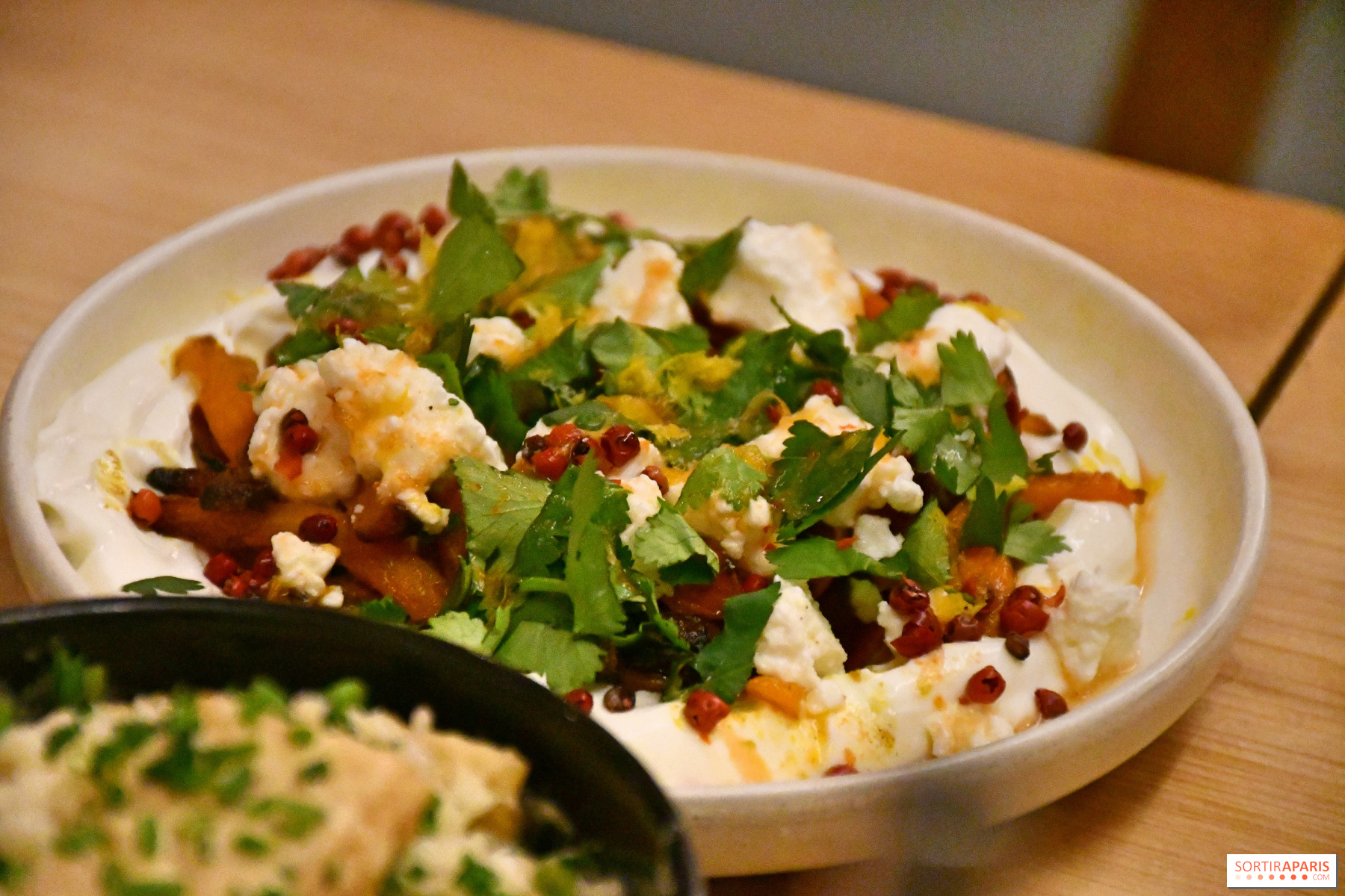 Vi elsker også de ristede gulerødder med ras el hanout, labneh, feta, rosa peber, ristede hasselnødder og appelsinskal. Bemærk, at denne ret indeholder koriander, så husk at bede om at få den uden, hvis du er en af dem, der ikke kan tåle det. Opskriften er meget repræsentativ for Lovebirds køkken: en kærlighed til grøntsager og internationale influencers.