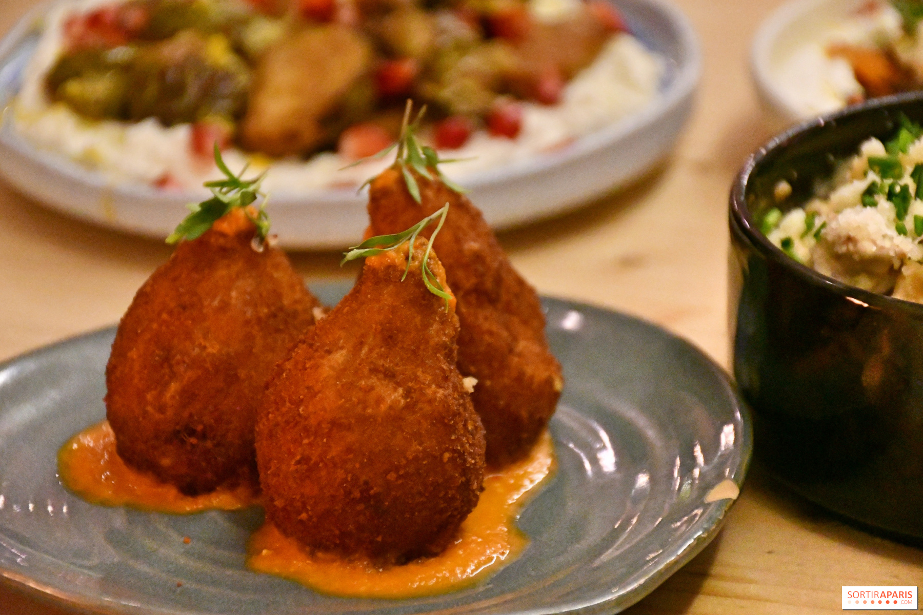 Med 5 tapasretter til to personer blev vi rigeligt mætte. Under vores besøg fik vi prøvet coxinhas, brasilianske kroketter med strimlet kylling og en stærk (men ikke for stærk!) sauce, der afspejler kokkens oprindelse. Under en gylden og let sprød panering gemmer sig en generøs fyldig fyldning med smagfuld, mørt kylling: et must for elskere af fingerfood.