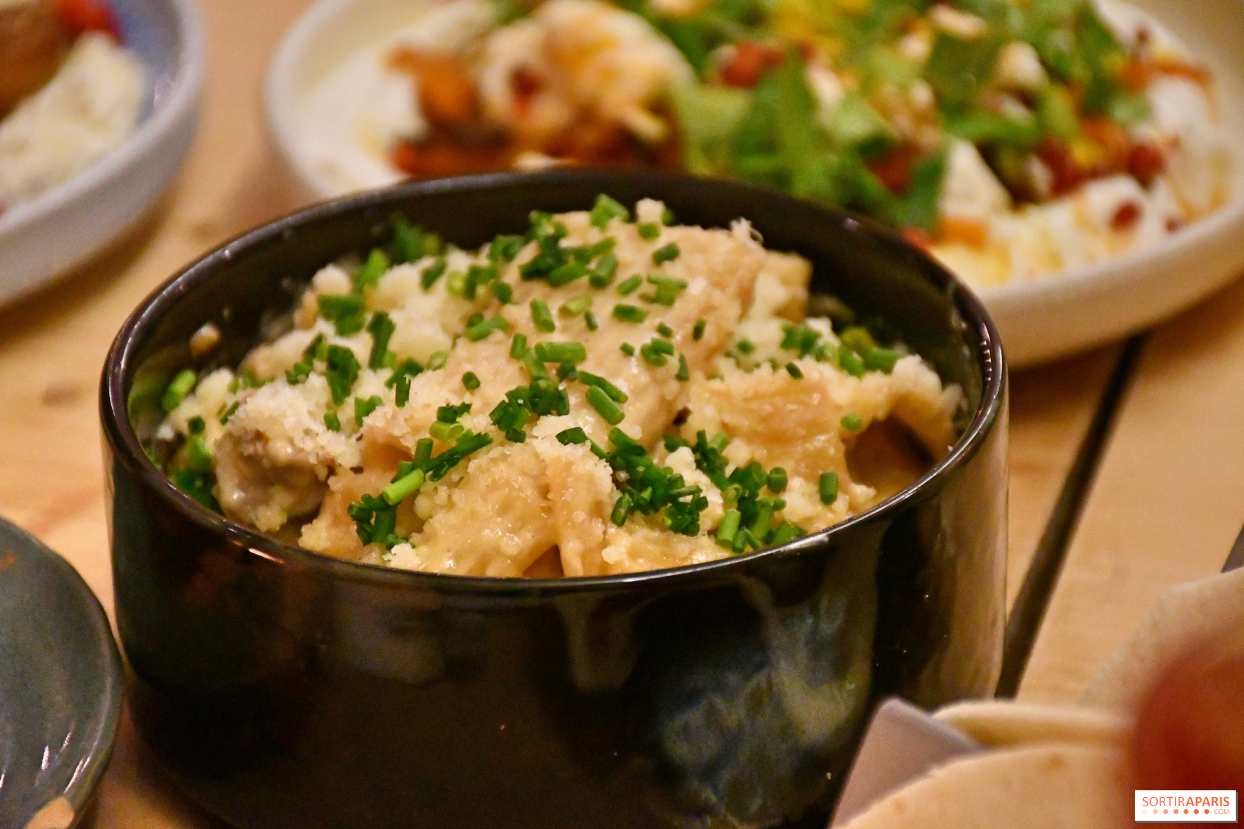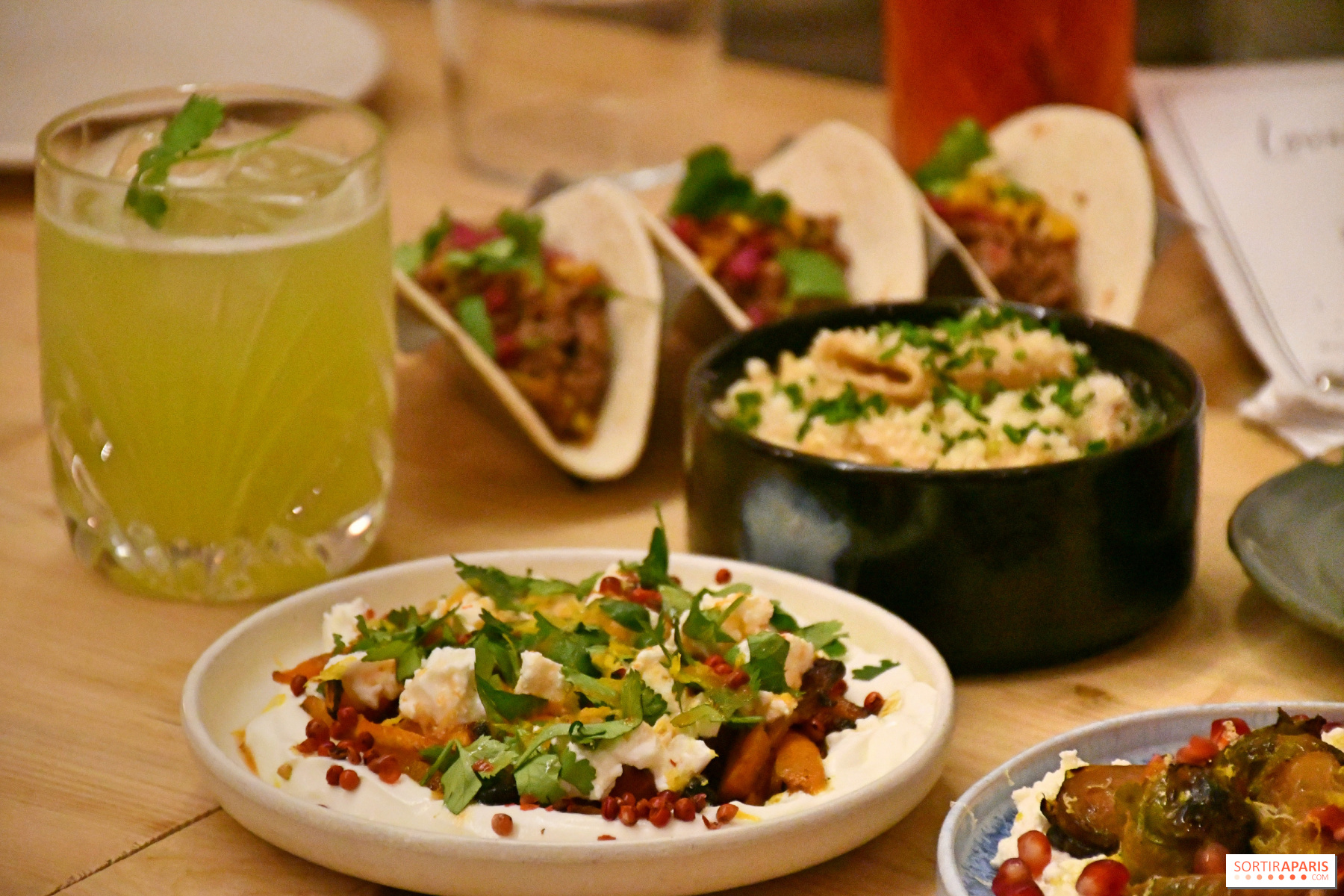 For at forblive i den behagelige ende er rigatoni med svampe, saké og Grana Padano en sand syndig fornøjelse med sin cremede pasta. Også her er der ikke sparet på fyldet! Hvad angår oksekødstacos, der serveres i tre, er det en mere enkel, men stadig effektiv opskrift med krydret hakket oksekød, tomatsauce, ristet majs og løgpickles.