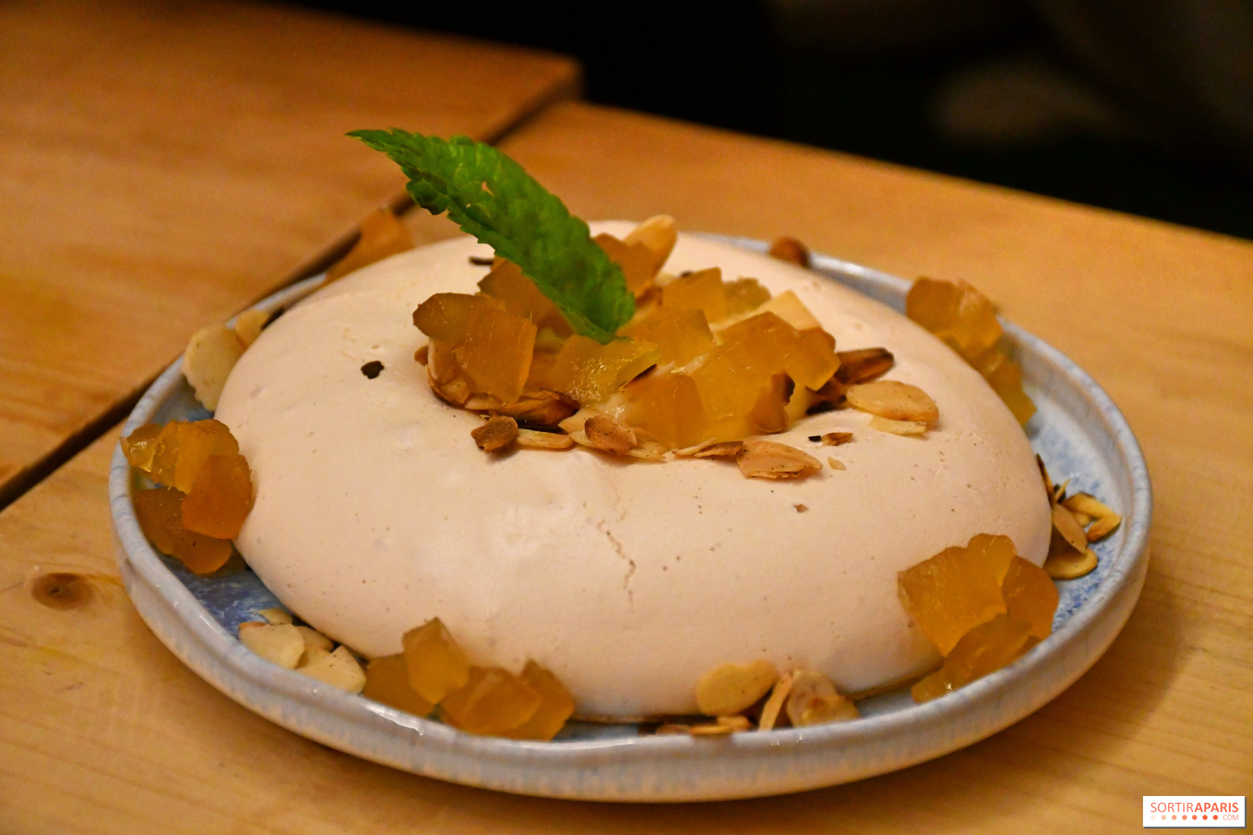 Til dessert er der altid kreativitet på menuen, og restauranten tilbyder endda sin egen champagne gourmand, et festligt alternativ til den traditionelle café gourmand. Vi lod os friste af Pavlova lemon curd, kandiseret ingefær og mandler. Denne dessert er fuld af pift, og den syrlige smag udligner på fin vis marengsens sødme. Men pas på, hvis du har en følsom gane, for det er frisk kandiseret ingefær, så smagen er meget kraftig.