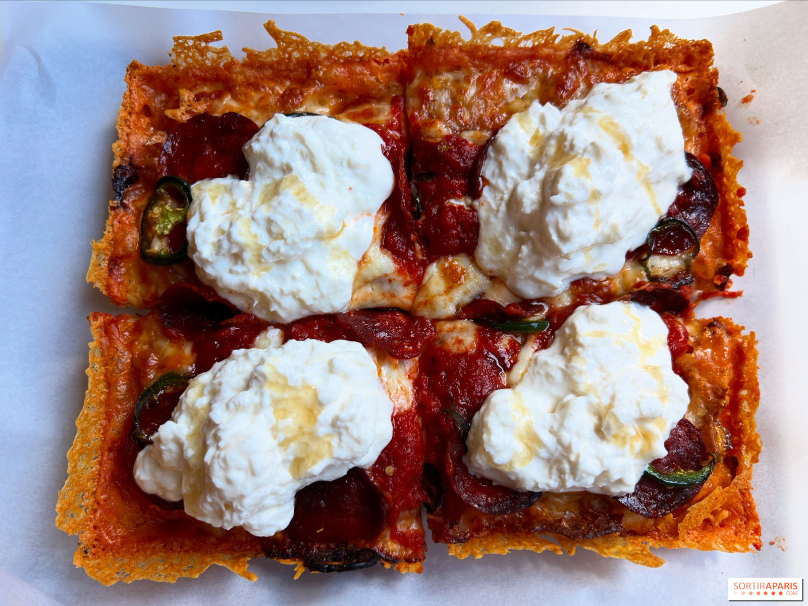 Mens New York har sin pizza, der drypper af ost (og fedt), og Chicago sin deep dish, har Detroit sin egen version, som er en variation over deep dish. Men i modsætning til sin fætter fra Chicago ligner denne ikke en tærte med flere lag, men snarere en amerikaniseret version af den romerske foccacia al taglio med sin sprøde dej, cheddarbelagte belægninger og toppings, der tilføjes efter tilberedningen - med undtagelse af fior di latte, som er ret sejt.