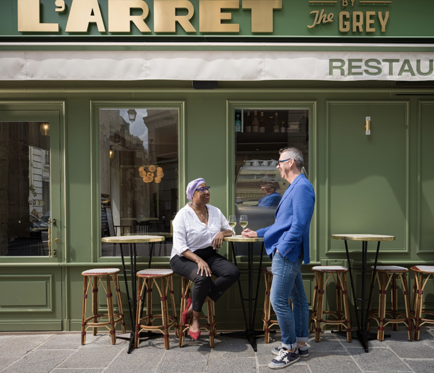 Den nye restaurant hedder L'Arrêt og vil tilbyde et køkken, der kombinerer det bedste fra kulturen og gastronomien i de sydlige havnebyer i USA(Port City Southerncuisine) med ånden fra en fransk kvartersbistro. Kokken har taget over fra Le Café de l'Espérance, en velkendt restaurant på rue de l'Université.