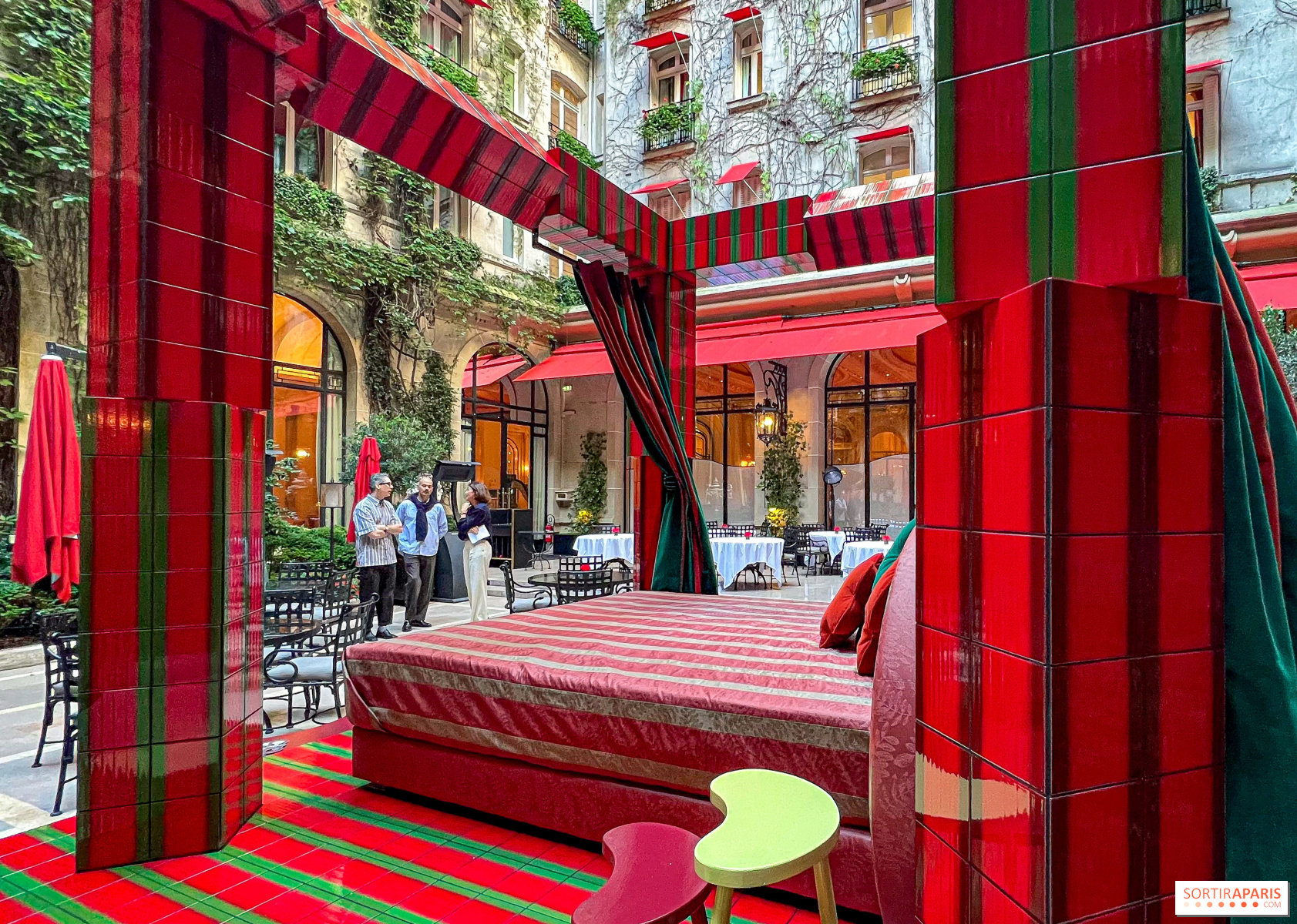 Plaza Athénée går i seng ... men på en stor måde! Uchronia installerer en monumental seng, som vil forvandle Cour Jardin til et drømmeagtigt opholdssted frem til 11. november 2025. Rød, grøn, elegance og design blander sig i denne Day Bed, der er åben for alle, og hvor hver eneste detalje indbyder til at slentre, tænke og drømme i hjertet af det 8. arrondissement.