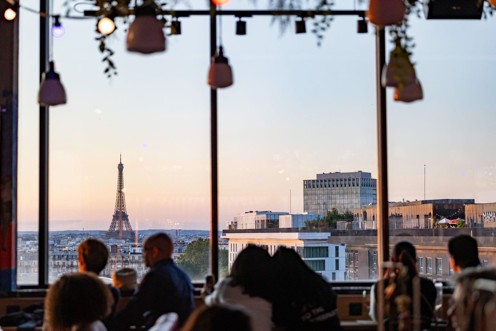 Omgivelserne blander retro-ånd med moderne detaljer: røde banketter, en imponerende central bar, rå materialer og et par værker af Rebecca Bourbigot til den kunstneriske sjæl. Udenfor er der smukt beplantet og dekoreret med guirlander, som giver en chik stemning af tivoli. Læn dig tilbage, tag en drink (drikkevarer er ikke inkluderet i prisen), og nyd denne festlige boble, der svæver over byen.