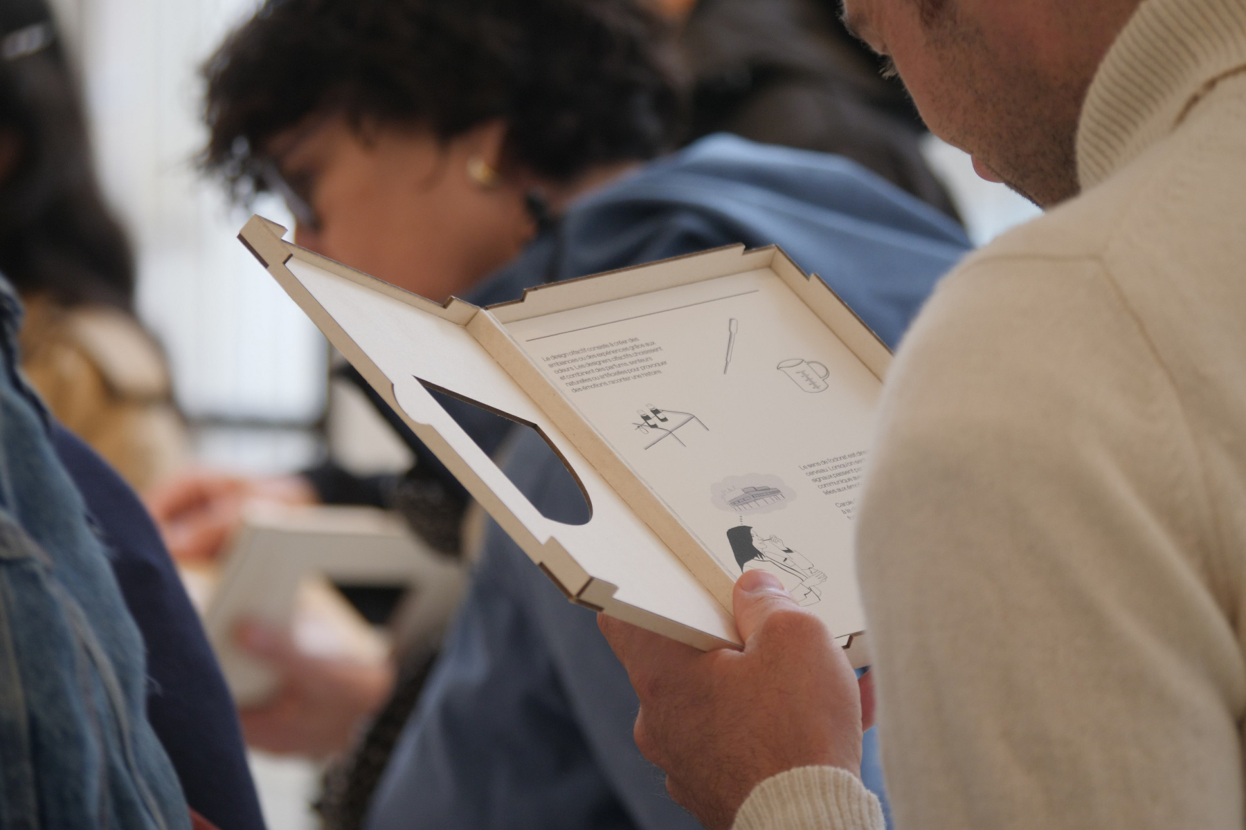 Während der gesamten Ausstellung begleitet eine Vermittlerin die Besucher. Sie vermittelt Schlüssel zum Verständnis der Werke, erklärt das Know-how und lässt die Besucher die Handgriffe der Handwerker und Designer entdecken. Dank dieser lebendigen Vermittlung wird der Besuch zu einem Moment des Austauschs und des Lernens, der für alle zugänglich ist.
