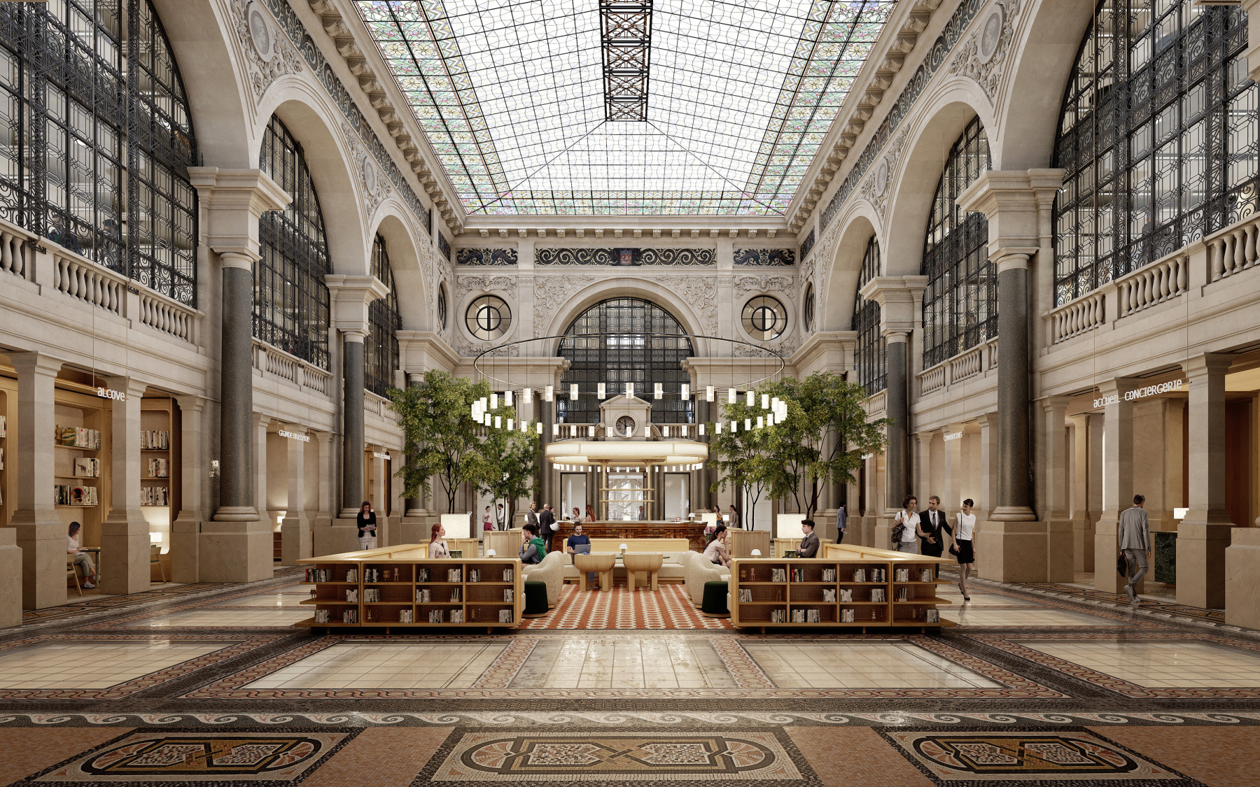Aber es war an der Zeit, die Stuckverzierungen zu entfernen und die Fenster zu öffnen - im wahrsten Sinne des Wortes. Das Gebäude, das zu sehr in sich selbst verschlossen war, öffnet sich nun seinem Viertel. Es wird mehr als nur ein Arbeitsplatz sein, es wird ein echter Pariser Hub werden. Im Erdgeschoss wird es ein Restaurant, eine Bar, ein Hotel, einen Coworking-Bereich und sogar ein Fitnessstudio geben ... alles öffentlich zugänglich. Zwei Gartenebenen werden das Ganze begrünen, und in der 6. Etage wird ein völlig neuer Raum namens Parisarium außergewöhnliche Ausblicke auf die Dächer und die Pariser Landschaft bieten. Das Büro wird zu einem Ort des Lebens, des Durchgangs und der Durchmischung.