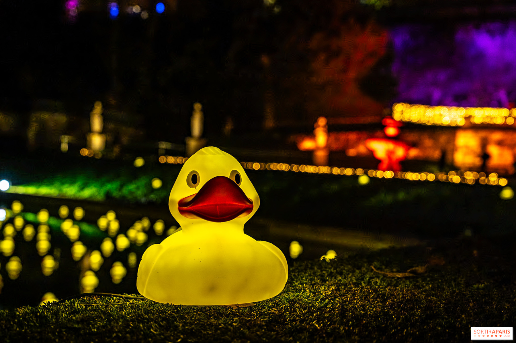 Zu den schönen Neuheiten dieser Ausgabe gehören der Bereich mit den Seifenblasen, in dem man in einer ausgelassenen Atmosphäre tanzen kann, der erstaunliche Teich mit leuchtenden Enten und der funkelnde Stern, der alle Blicke auf sich zieht. Der „Tanz der Enten”, eine spielerische und poetische Installation von Poulpo Studio, belebt das Becken des Grand Jet mit mehr als 200 leuchtenden Enten, die auf der Oberfläche schwimmen und ein farbenfrohes Ballett bilden, das an das Angeln auf Jahrmärkten erinnert. Kinder lieben es, und wir geben zu, dass Erwachsene es auch lieben.