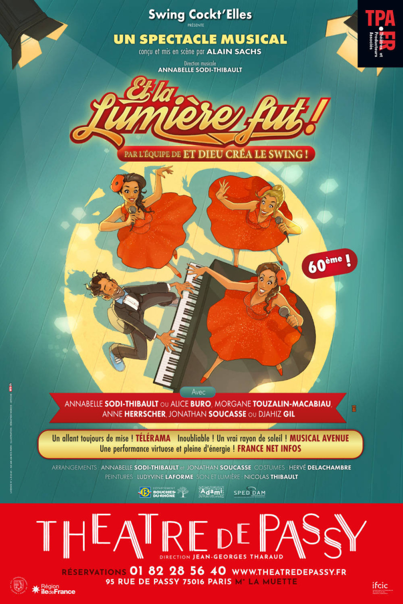 Nachdem sie das Publikum beim Festival d’Avignon und auf einer nationalen Tournee begeistert hat, kehrt die Show „Et la lumière fut“ nach Paris zurück. Diese Kreation der Swing Cockt’Elles unter der Regie von Alain Sachs wird ab dem 15. November 2025 im Théâtre de Passy zu sehen sein. Das Universum der Show knüpft an „Et Dieu créa le Swing !“ an, den vorherigen Erfolg, der aus derselben Zusammenarbeit zwischen dem Vokal-Trio und dem Regisseur hervorgegangen ist.