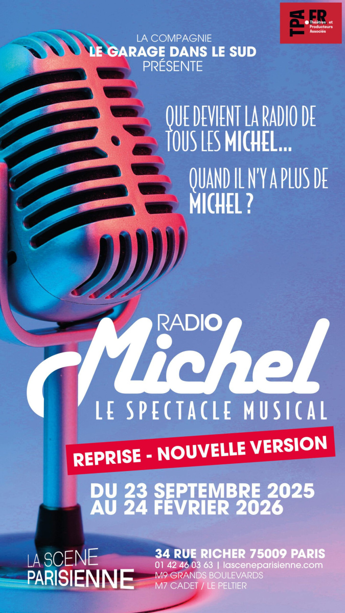 La Scène Parisienne zeigt seit dem 23. September 2025 Radio Michel, eine Musikshow, die rund um das berühmte Webradio konzipiert wurde, das ausschließlich Künstler mit den Vornamen Michel oder Michèle sendet. Die Show wird bis zum 24. Februar 2026 einmal im Monat aufgeführt und kehrt in einer überarbeiteten Version zurück, die von der Compagnie Le Garage im Süden präsentiert wird. Sie bietet eine musikalische Live-Reise durch mehr als dreißig Songs aus dem Repertoire von Michel Fugain, Michel Berger, Michel Jonasz, Michel Sardou, Michel Polnareff, Michel Delpech, Michel Legrand und Michèle Torr.