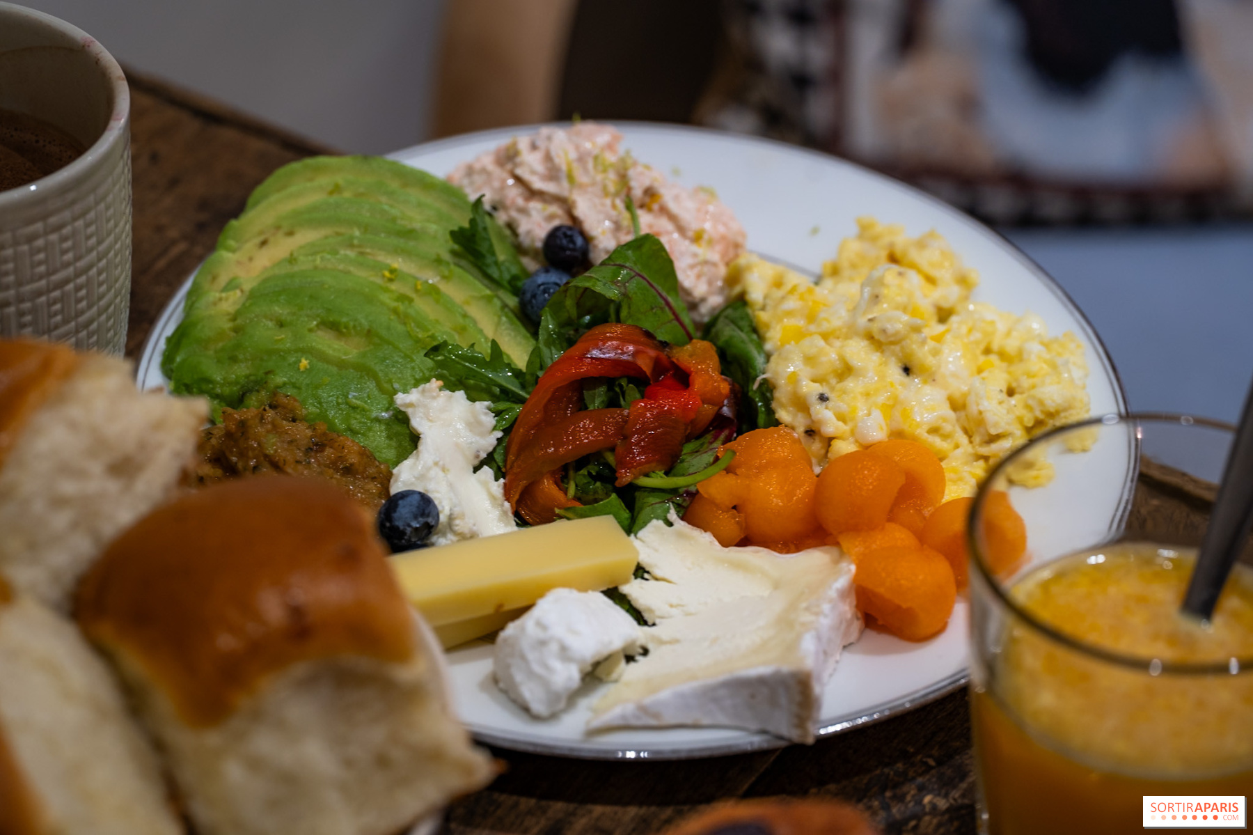Der Sonntagsbrunch ist ein echtes Highlight des Lokals. Bei unserem Besuch umfasste der Teller hausgemachte Fischrillettes, Bio-Rührei, vor Ort zubereitetes, ultra-weiches Toastbrot, Avocado, Käse und frisches Obst mit Salat für 21 Euro. Das Komplettmenü für 34 Euro umfasst zusätzlich ein Heißgetränk, frisch gepressten Orangensaft, ein Gebäck nach Wahl und das Dessert des Tages. Wir geben zu, dass das sehr viel war, und Corinne erzählt uns, dass es nicht selten vorkommt, dass die Gäste Reste mitnehmen. So hatten wir am späten Nachmittag einen sehr leckeren Snack.