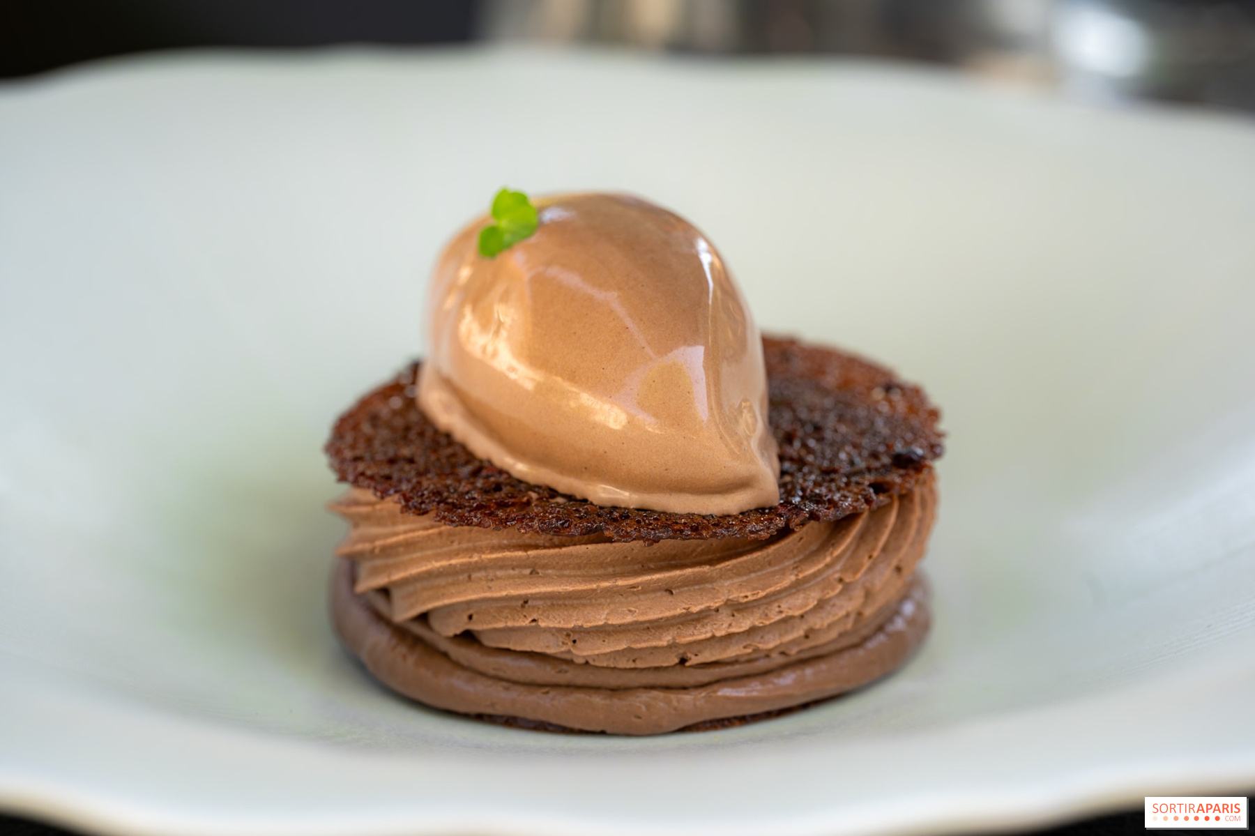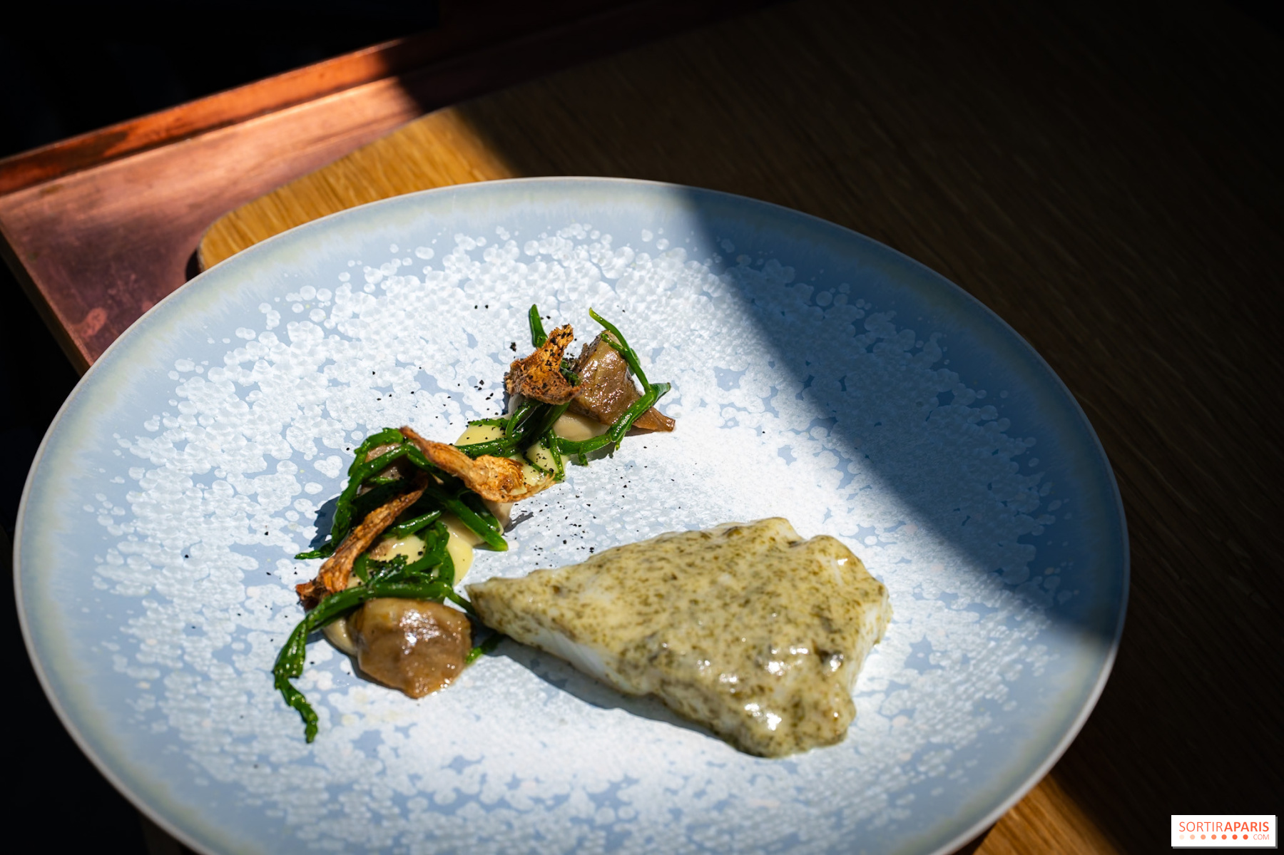 Das Fischgericht setzt dieses delikate Register fort. Ein Saint-Pierre, genau richtig perlmuttfarben, kommt glasiert mit Algen aus Croisic an und wird mit Artischocken-Paprika und Zitronenpaste serviert, für eine sehr passende Kombination zwischen Meer und Pflanzen.