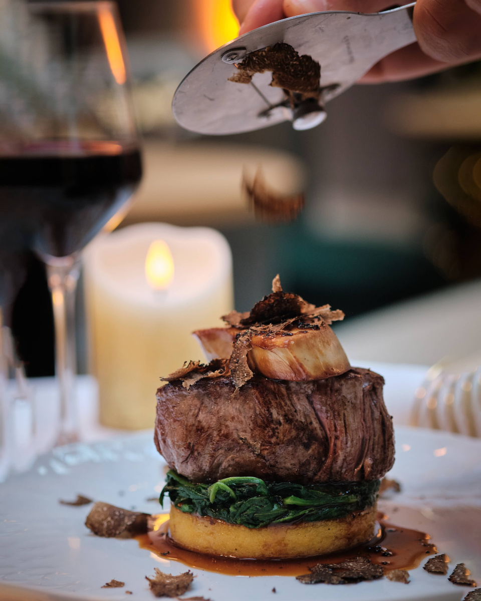 Κάθε πιάτο είναι σχεδιασμένο σαν μια δημιουργία υψηλής ραπτικής: μαρμελάδα Gala με μαρμελάδα μήλου, μοσχάρι Rossini με σάλτσα τρούφας ή ακόμα και μια λεπτή μαύρη δασική τούρταγια να ολοκληρώσετε με στυλ. Ένα πραγματικό γαστρονομικό ταξίδι σε ένα φωτεινό και εκλεπτυσμένο περιβάλλον, για να απολαύσετε κάτω από το τζάμι.
