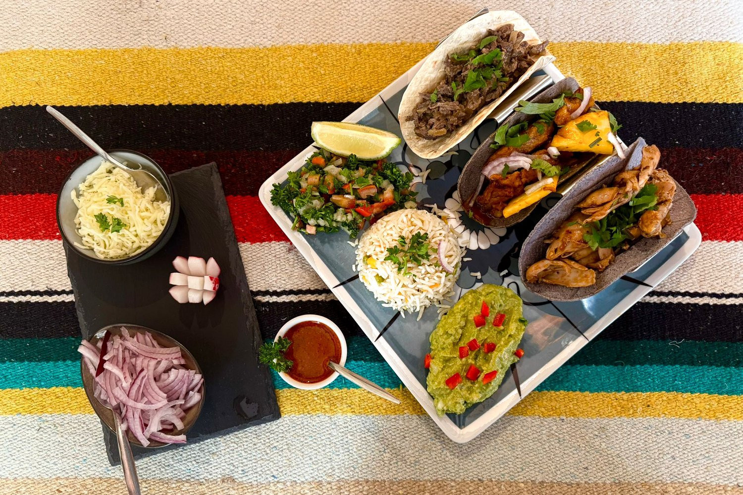 Τα tacos του Azteca: ένα βασικό μέρος της μεξικανικής κουζίνας. Στο Azteca, τα tacos είναι κάτι πολύ περισσότερο από ένα απλό πιάτο, είναι η χαρακτηριστική σπεσιαλιτέ του μαγαζιού. Παρασκευάζονται καθημερινά με φρέσκα υλικά και παραδοσιακές συνταγές και προσφέρουν ένα γαστρονομικό ταξίδι στην καρδιά του Μεξικού. Στο μενού υπάρχουν τα μεγάλα κλασικά πιάτα: το Pollo, το Res, τα tacos al Pastor και, τέλος, τα χορτοφαγικά. Σερβιρισμένα σε μαλακές τορτίγιες και συνοδευόμενα από ρύζι, σαλάτα και γουακαμόλε, τα tacos του Azteca είναι ένα τέλειο μείγμα φρεσκάδας, αυθεντικότητας και συντροφικότητας.