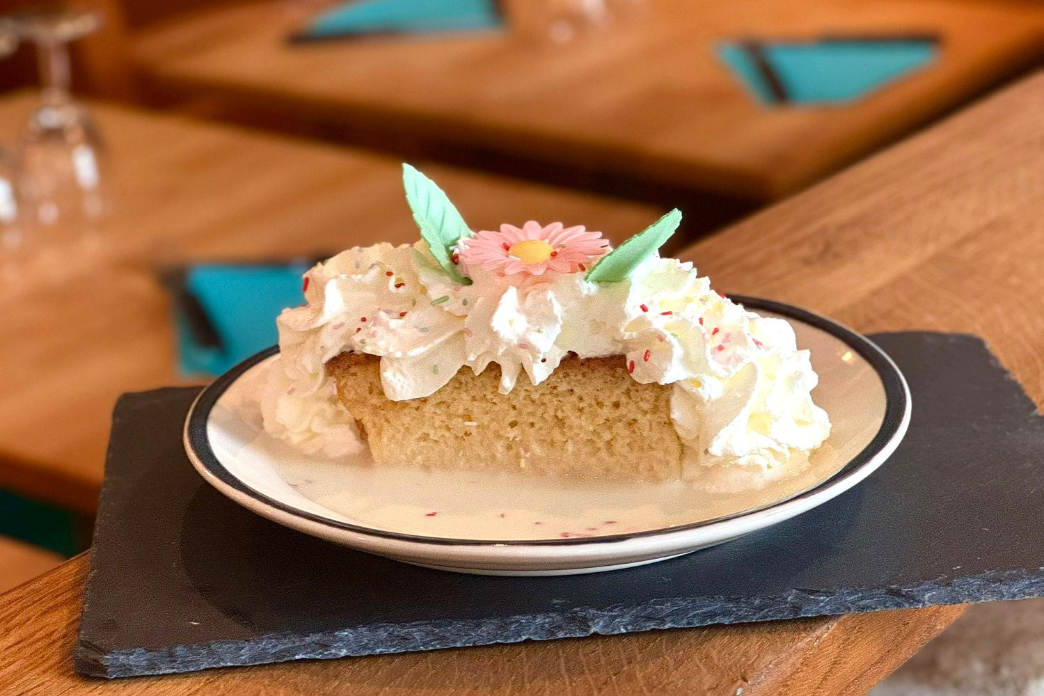 Το Pastel de Chocolate, ένα κέικ με έντονο άρωμα κακάο, θα ενθουσιάσει τους λάτρεις της καθαρής σοκολάτας, ενώ το περίφημο Gâteau Tres Leches, υγρό και ντελικάτο εμποτισμένο σε τρία γάλατα, προσθέτει μια νότα γλυκύτητας και άνεσης για να κλείσει το γεύμα ανάλαφρα.