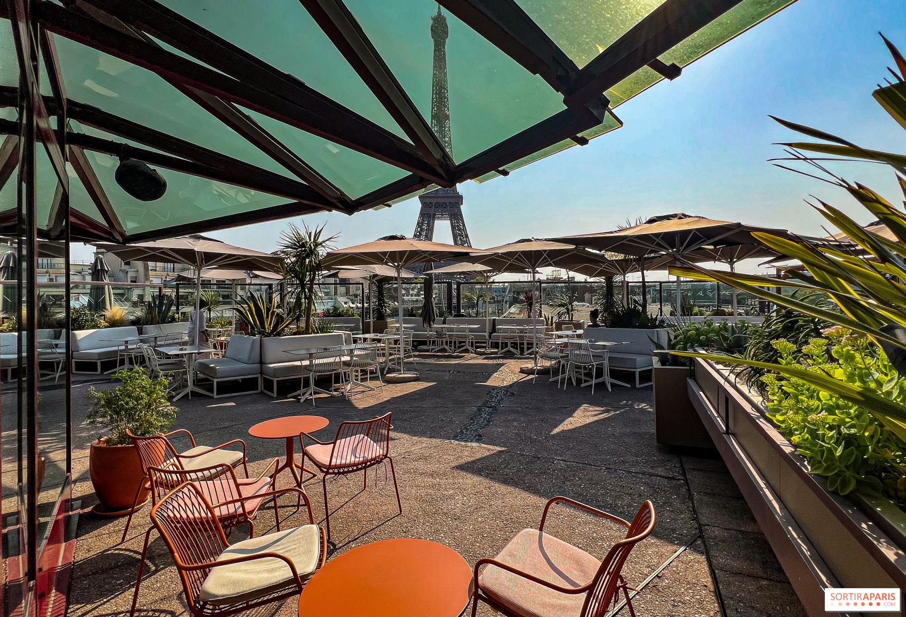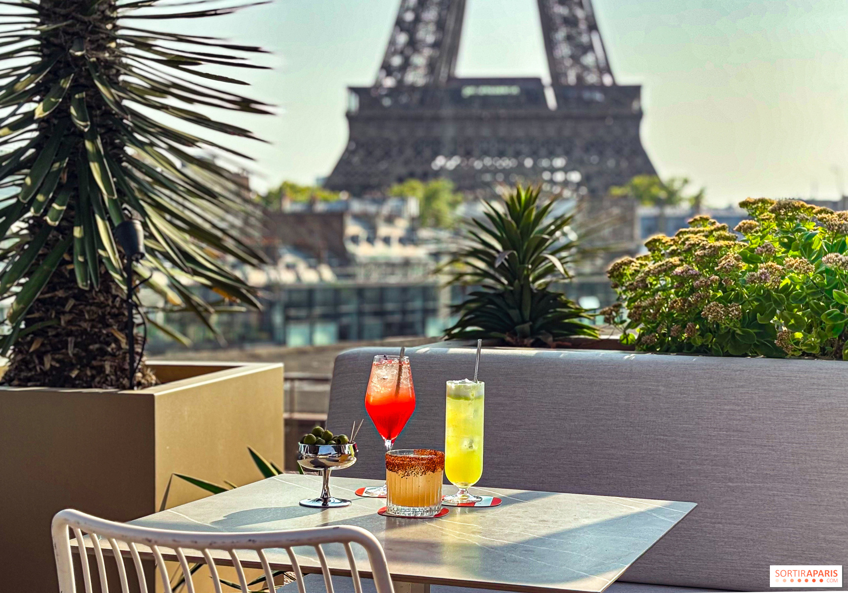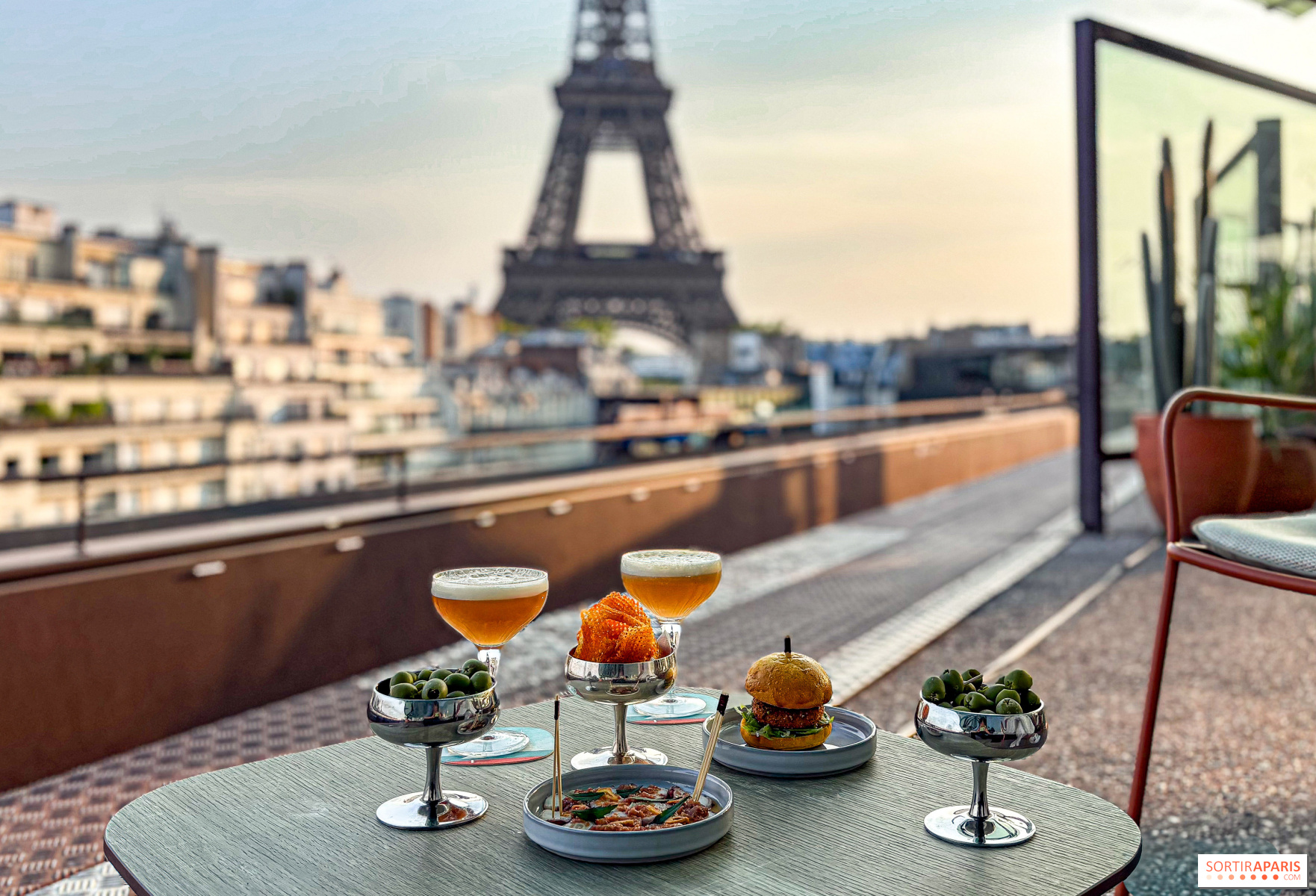 Το υπαίθριο εφήμερο μπαρ ξεδιπλώνει τη γοητεία του απέναντι από τον Πύργο του Άιφελ, με εκπληκτική θέα στο Trocadero, τον Σηκουάνα από κάτω και τη δεξιά όχθη στο βάθος. Καθώς ο ουρανός χρυσαφίζει, το πανόραμα γίνεται καθαρά υπνωτικό.