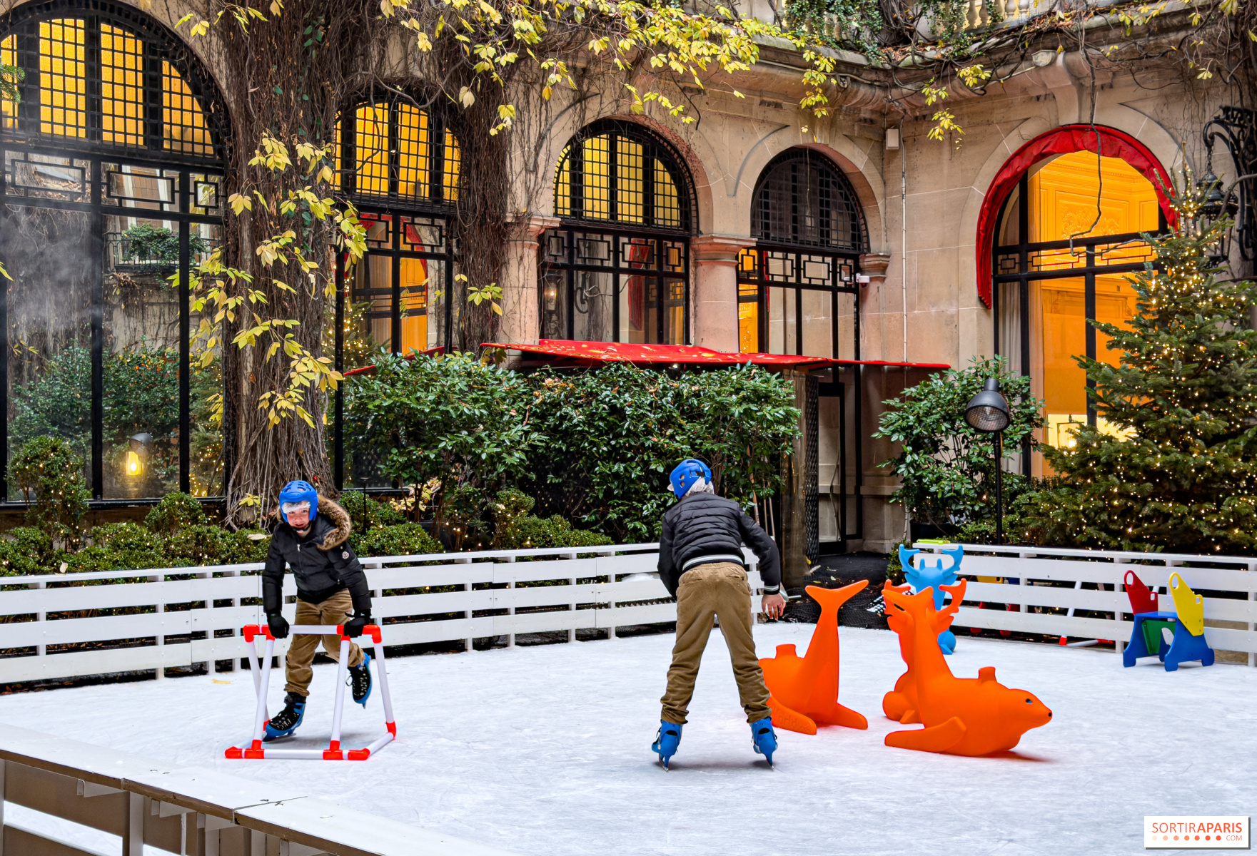 Nestled within the grand courtyard of the palace, the renowned pop-up ice rink at the Plaza Athénée offers nearly 100 square meters of real ice. From November 27, 2025, to January 31, 2026, children aged 3 to 12 can glide through the shimmering cascade of lights that spill over the foliage and walls of the hotel, creating a magical winter wonderland.