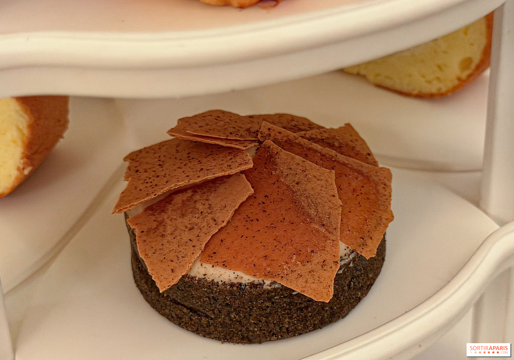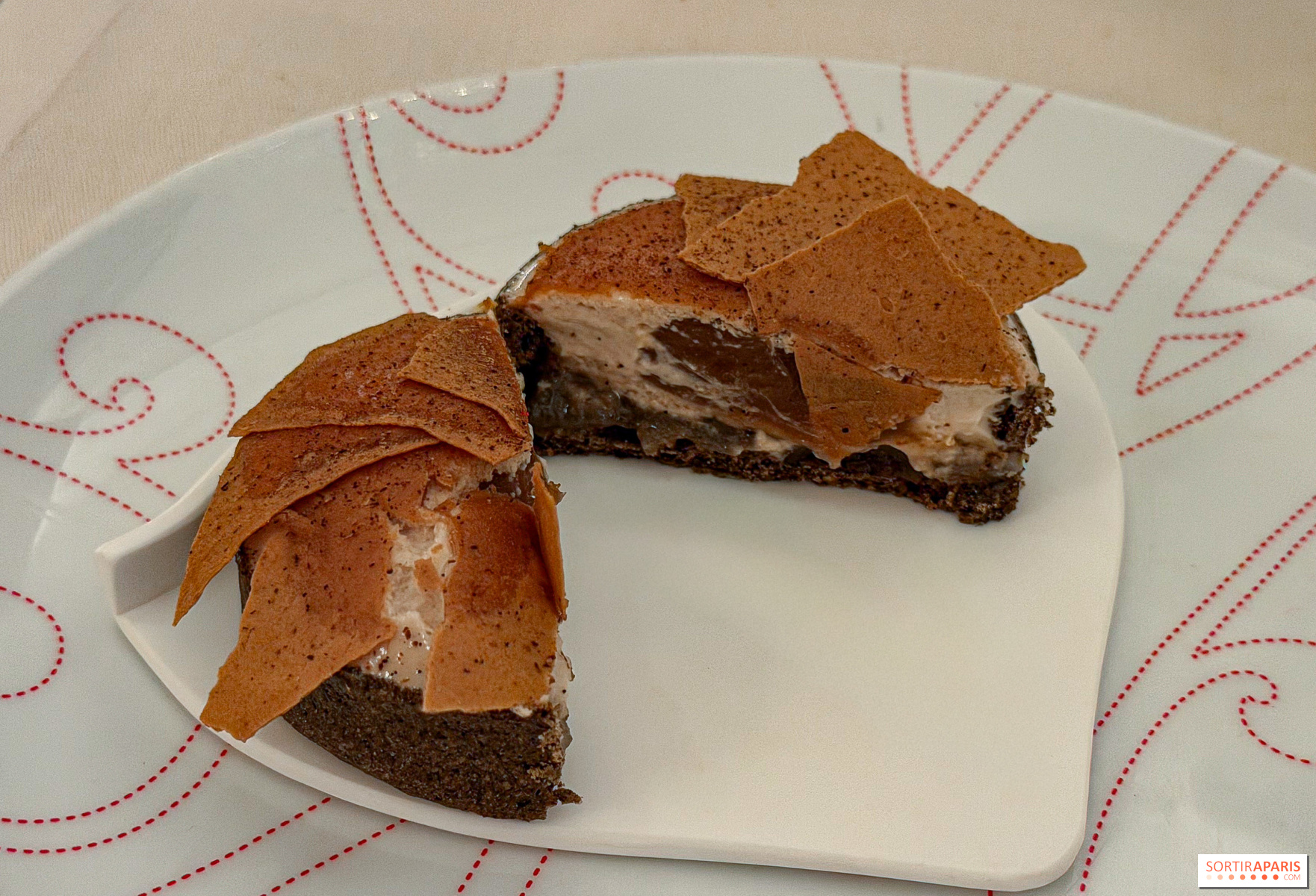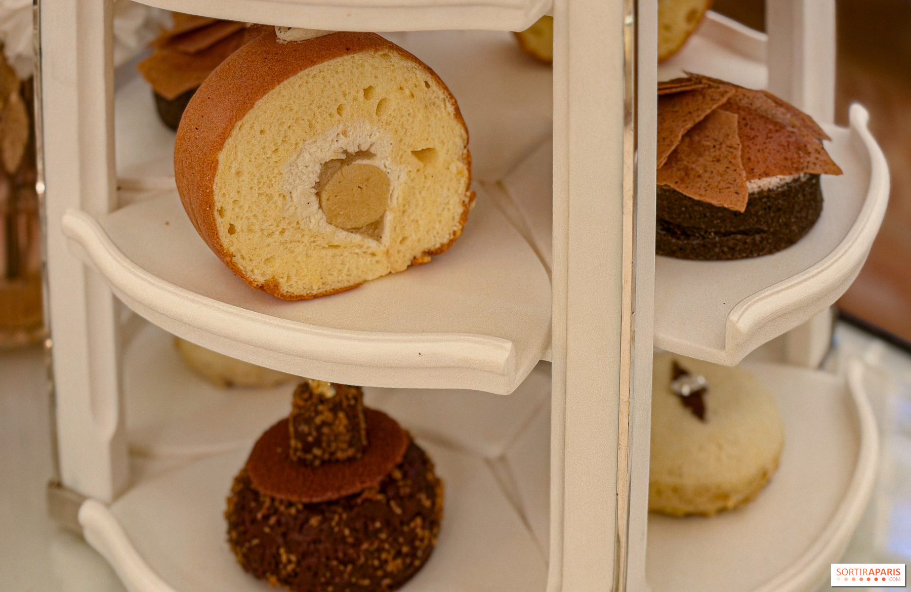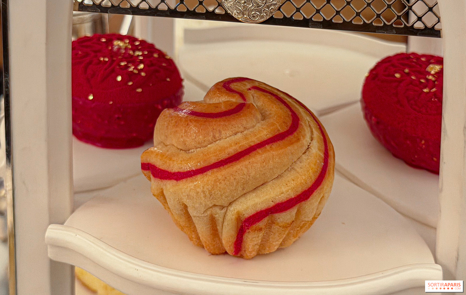 The display, whose design echoes the iconic façade of the Plaza, then showcases six exquisite pastries. At the top, a champagne crème brioche, soft and flawlessly crafted, alongside the "100% Plaza"—a nod to the upcoming 2025 Christmas log: pecan biscuit, honey crunch, citrus marmalade, honey caramel, and citrus-honey mousse, all dressed in the house’s signature red. This bold honey-citrus pairing offers an elegant yet somewhat polarizing flavor profile. In the center, a chestnut tartlet filled with chestnut confit and delicate tuile wafers will delight connoisseurs, while the airy, melt-in-the-mouth pear-bergamot roulade provides a nostalgic taste that recalls the lightness of a Japanese cheesecake. At the bottom, the "100% vanilla" entices with its Madagascar vanilla-infused mousse, a well-hazelnutted praline center, and a crisp biscuit, while the Christmas choux filled with gingerbread and chocolate sparks debate, thanks to its pronounced spices and subtle bitter notes.