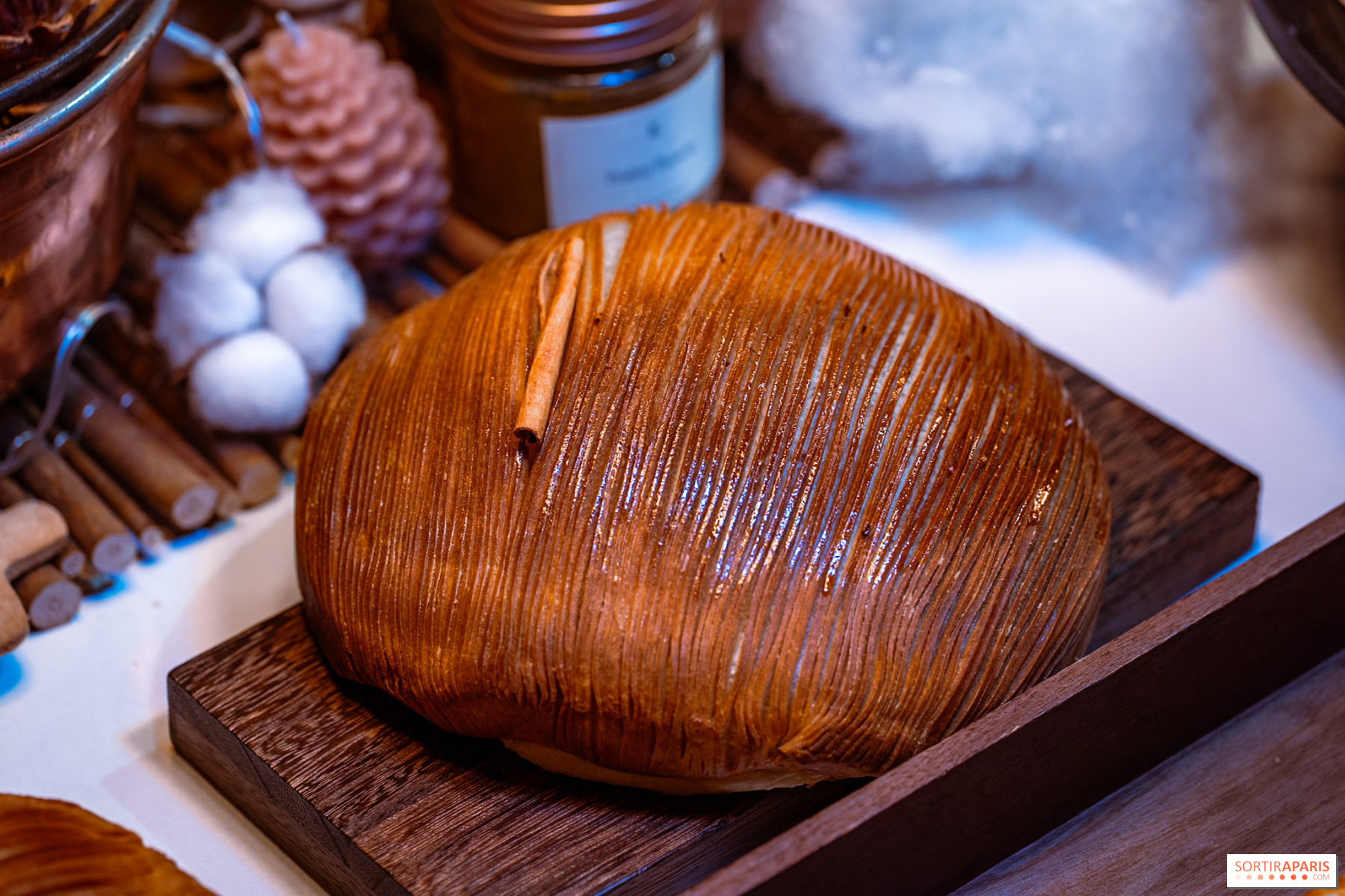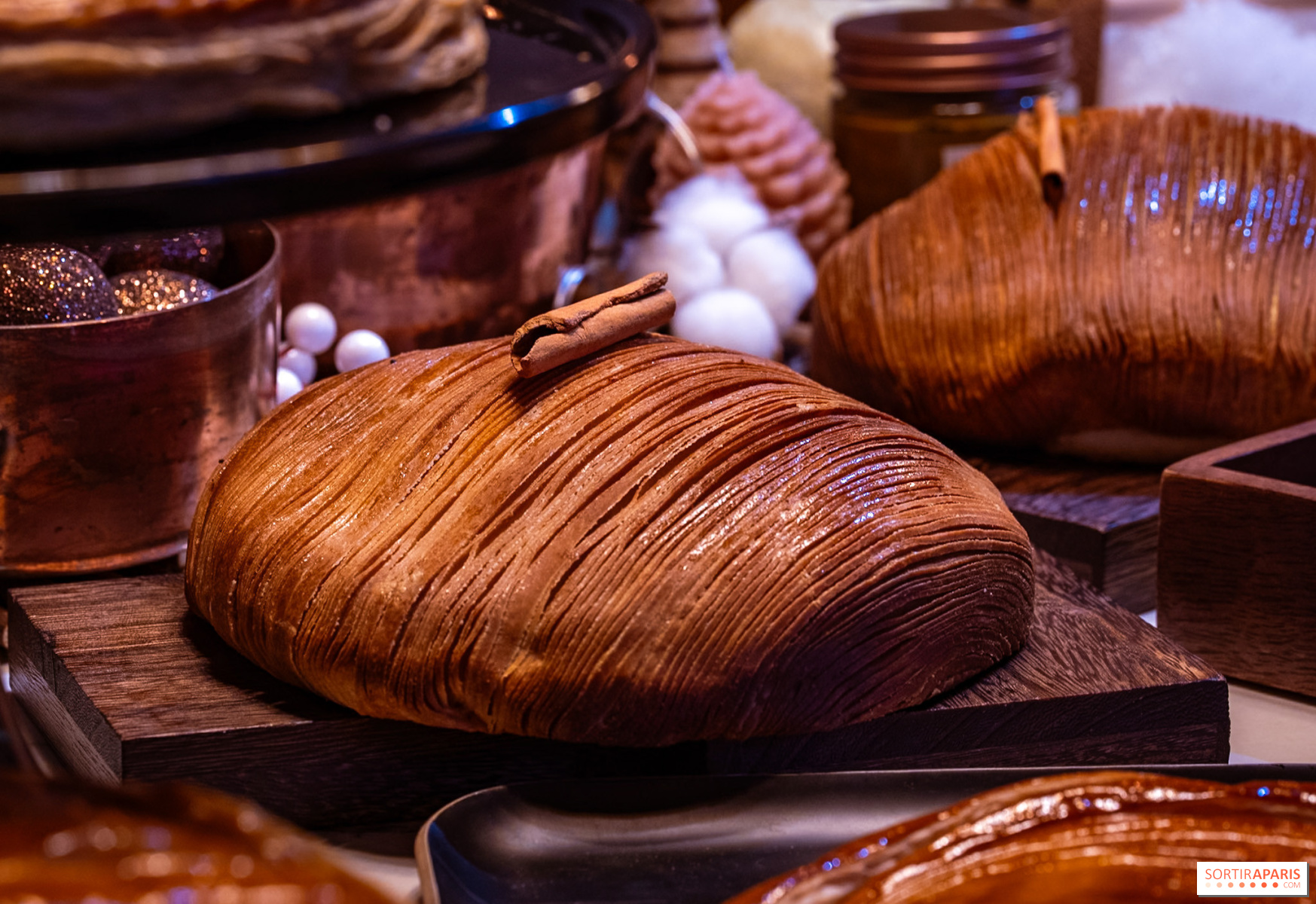 But it is certainly the second creation that won us over this year: the cinnamon frangipane galette designed for 5 to 6 people at €36. This version updates the traditional recipe with a twist reminiscent of American cinnamon rolls. The harmony between the creamy frangipane and the fragrant cinnamon works wonderfully. You get that satisfyingly flaky puff pastry, the nostalgic note of cinnamon that transports you back to childhood snack times, and a bold, distinctive flavor profile. A delightful discovery that’s rare in the world of original king cakes, where the usual variations tend to be limited to chocolate or apple fillings.