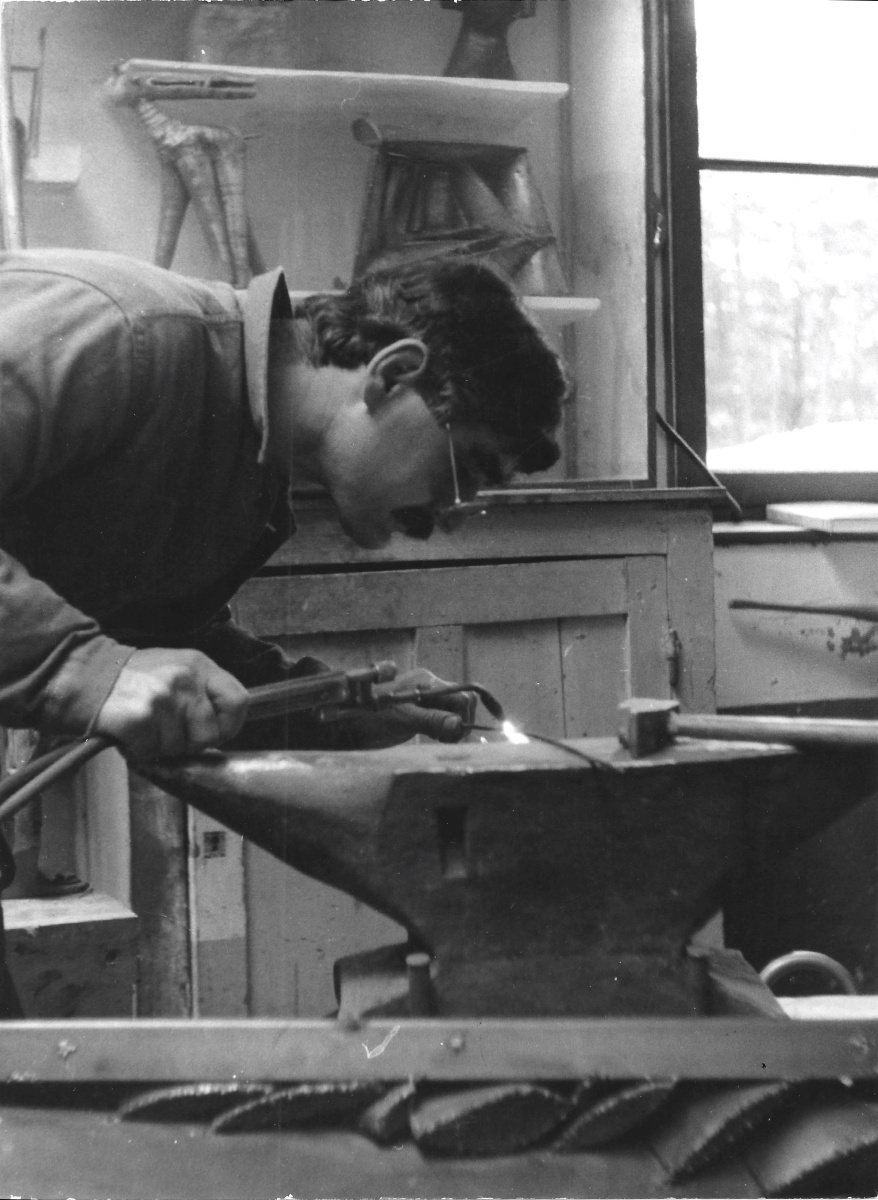 Philolaos, a Greek sculptor who settled in France in 1950, designed and built his own studio where he creates monumental sculptures and models, tableaux-reliefs, furniture and objects in steel, iron, wood, marble and terracotta.