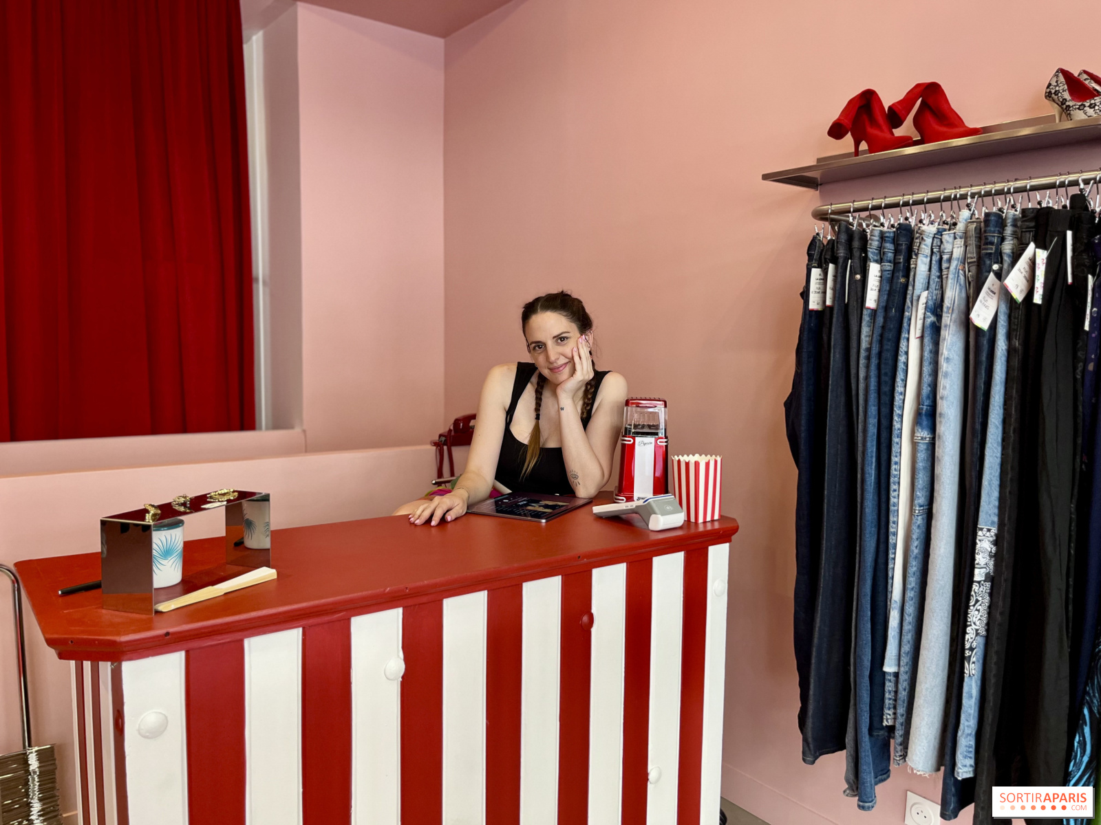 A boutique tinted red (with moldings on the ceiling), colorful and lively, just like its creators, who spend hours collecting and sorting these garments to offer them to you, accompanied by little labels bearing the name of the production, film, series or even commercial in which they were used. On the program are fancy pieces, including sequin bustiers from the Ça c'est Paris series, as well as simple denim shorts!
