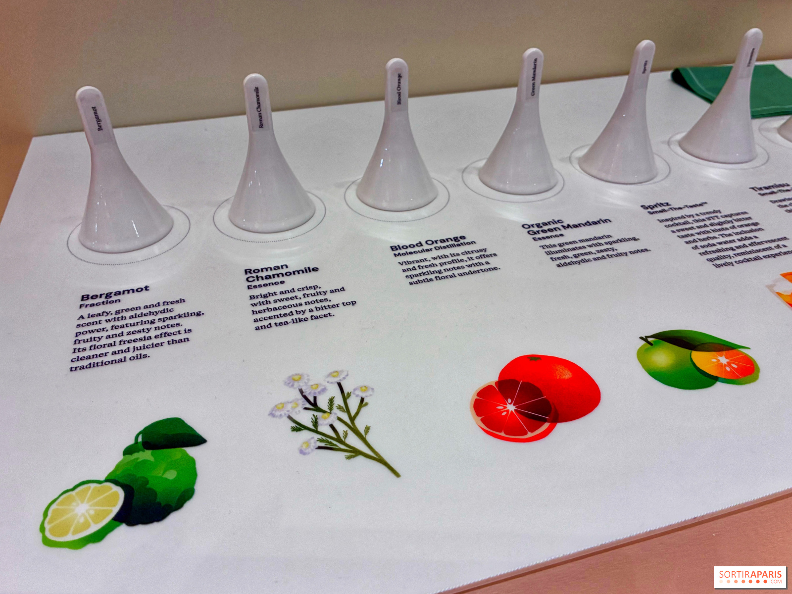 A little further on, a whole room packed with rose fragrances takes you into the heart of Oman’s cultivation and the various varieties of this bloom. The final installation spotlights exceptional creators and their stories, brought to life by the Osmothèque. Our favorite is the interactive experience from EveryHuman, which lets you craft your own scent with the help of artificial intelligence, beside the first-floor food area.