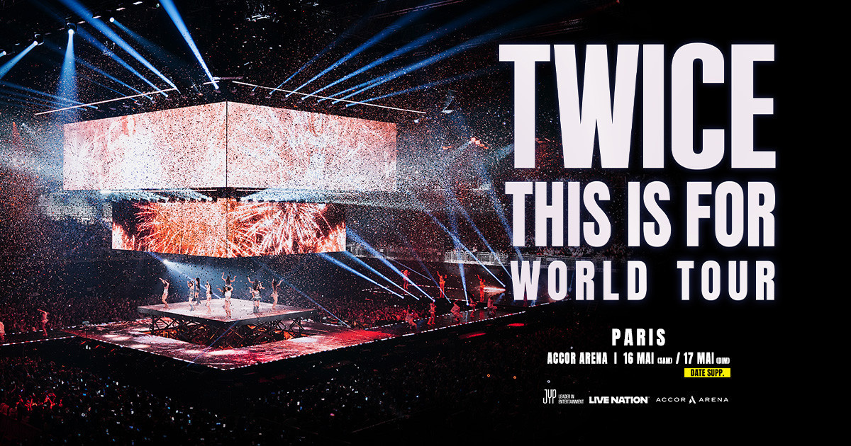 If the world of K-pop holds no secrets for you, then you're undoubtedly familiar with the girls from TWICE. This 100% all-female South Korean supergroup has announced an exceptional concert in Paris on the occasion of their new world tour entitled " This Is For World Tour " . Mark your calendars, TWICE will be welcoming their many, many fans to the hugeAccor Arena in Paris on Saturday, May 16, 2026. One date wasn't enough, so Live Nation France has announced a second TWICE concert in Paris, scheduled for Sunday May 17, 2026.