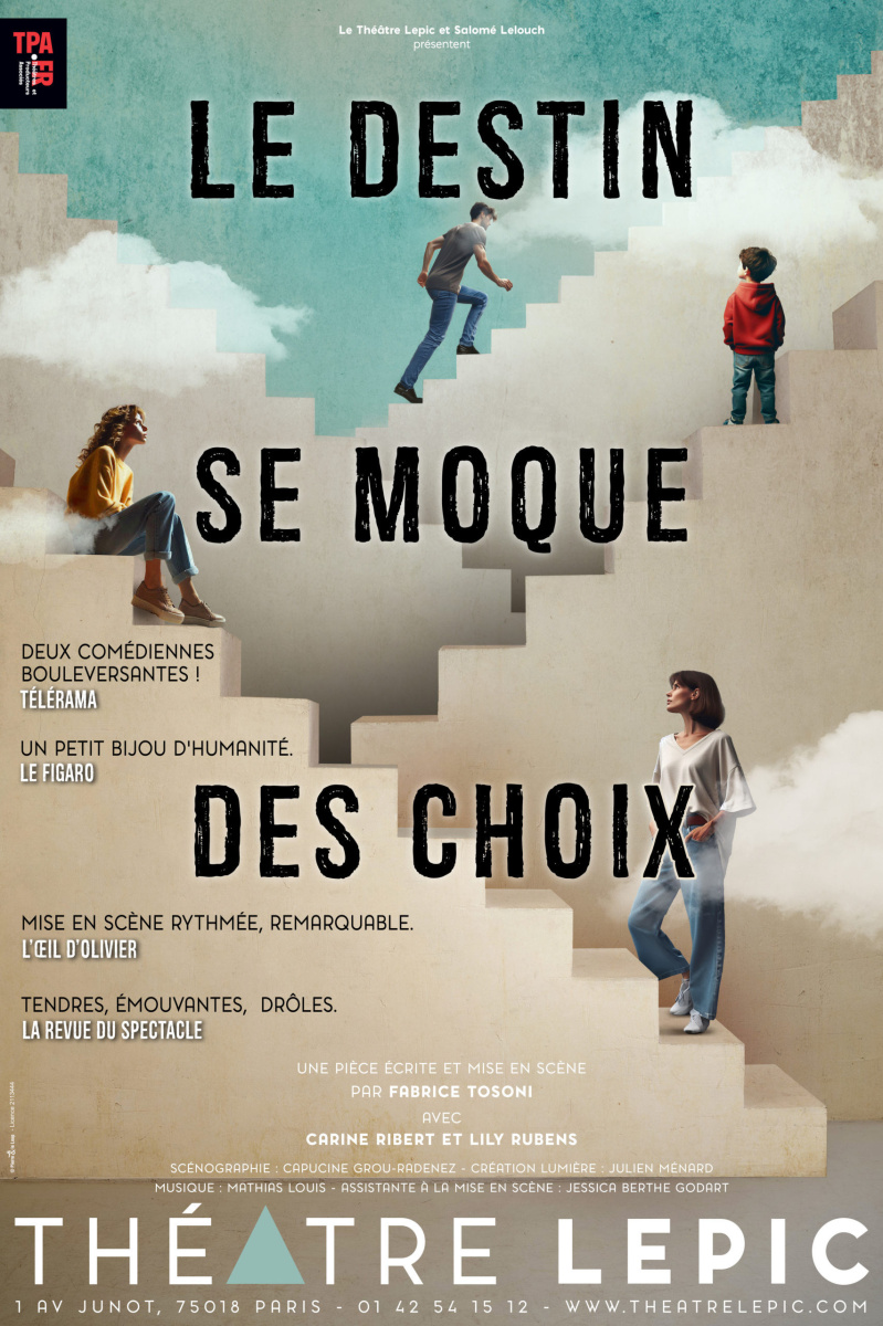 From February 3, 2025, Le Destin se moque des choix continues its adventure at Théâtre Lepic, offering an intense and moving theatrical experience. A play that questions the freedom of our decisions in the face of fate's whims.