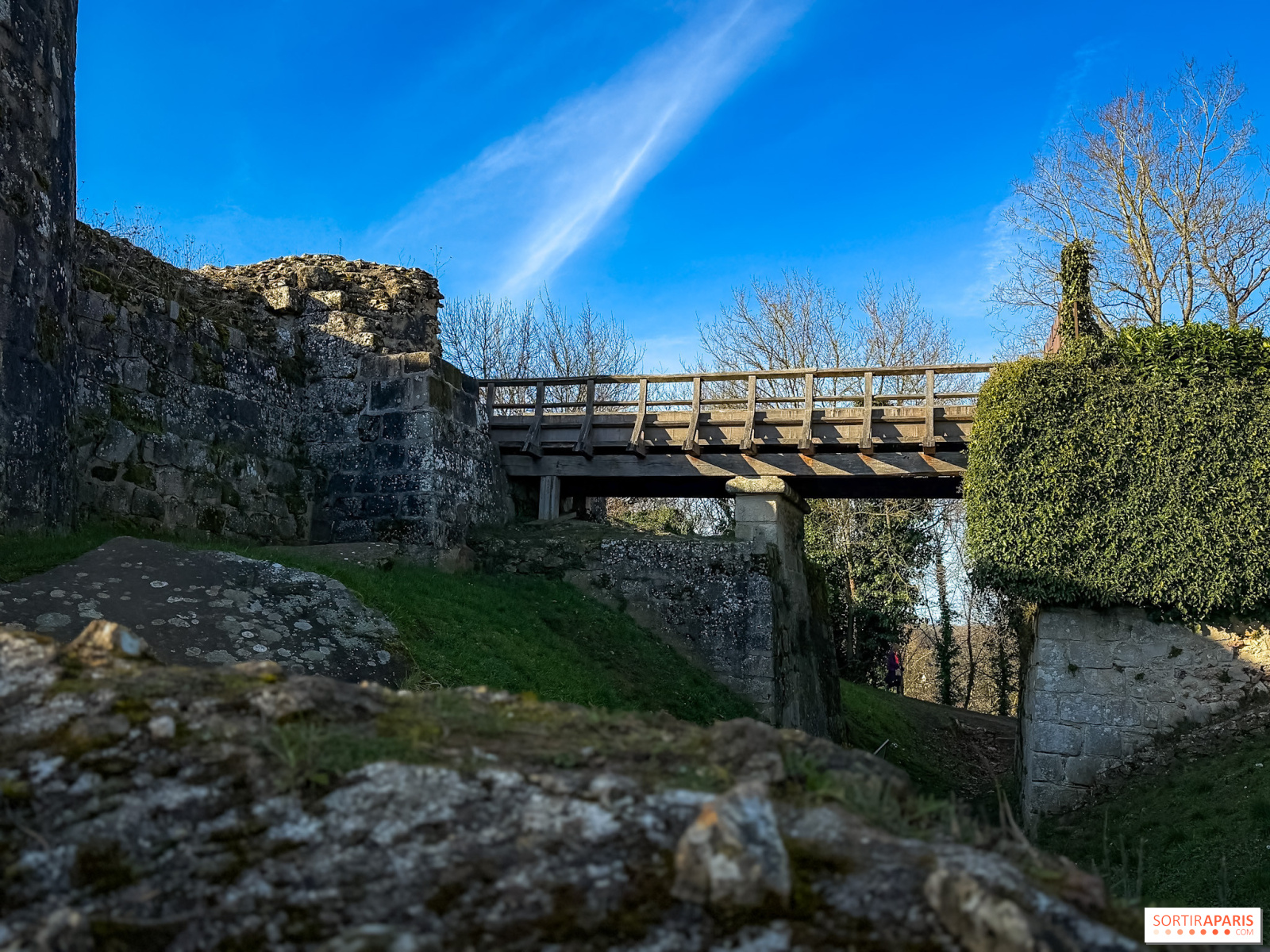 The original castle was destroyed between 1104 and 1107, during a conflict where the lords of Montlhéry opposed the king. Louis VI ordered its razing but spared the tower. It was not until the early 13th century, under Philippe Auguste, that the castle was rebuilt in its current form. The future King Louis IX, who would become Saint Louis, sought refuge here during the barons’ rebellion. Parisians walked the whole distance on foot to Montlhéry and accompanied the future king back to Paris. According to legend, in gratitude for his return from the Crusades in 1254, Saint Louis commissioned the building of a chapel at the castle’s entrance, whose foundations are still visible today on the left side, before the drawbridge.