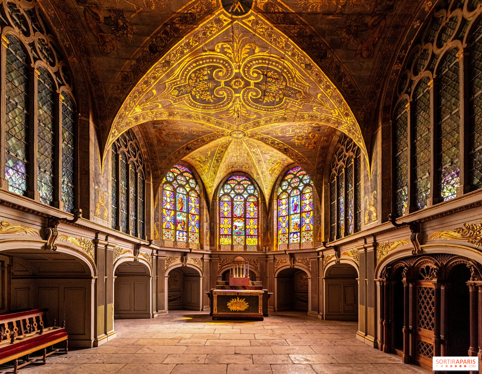 The site then enjoyed a second life in the 19th century. While the upper chapel had become a library by order of Napoleon I, the lower chapel became the royal family's oratory. Between 1834 and 1836, during Louis-Philippe's reign, the chevet’s windows were fitted with Gothic-style stained glass depicting Saint Saturnin, Saint Philippe and Saint Amélie, the patron saints of the royal family. What makes these stained glass panels even more distinctive is their provenance: crafted at the Sèvres factory, they were executed from the designs of Princess Marie, the king’s daughter. A royal chapel decorated by the hand of an artist-princess—that certainly gives the space a strong character.