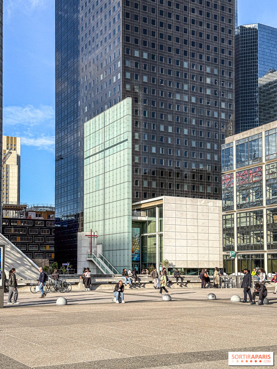 Historically, the site follows the Relais Jean XXIII, a contemplative space designed for the district’s workers and built in 1976 by architect Jean Beuzard. Notre-Dame de Pentecôte extends this spiritual presence in a neighborhood where people mainly come to work. Even today, it preserves this distinctive vocation: masses, times of prayer, welcome, exhibitions, conferences, a bookstore, and study groups focusing on the professional world or solidarity. More than a mere architectural curiosity, it is therefore a church for passage and pause, crafted to offer a moment of calm in the heart of one of the busiest places in Île-de-France. And that’s probably where its charm lies: in La Défense, it does not seek to rival the skyscrapers; it simply invites you to lift your eyes in a different way.
