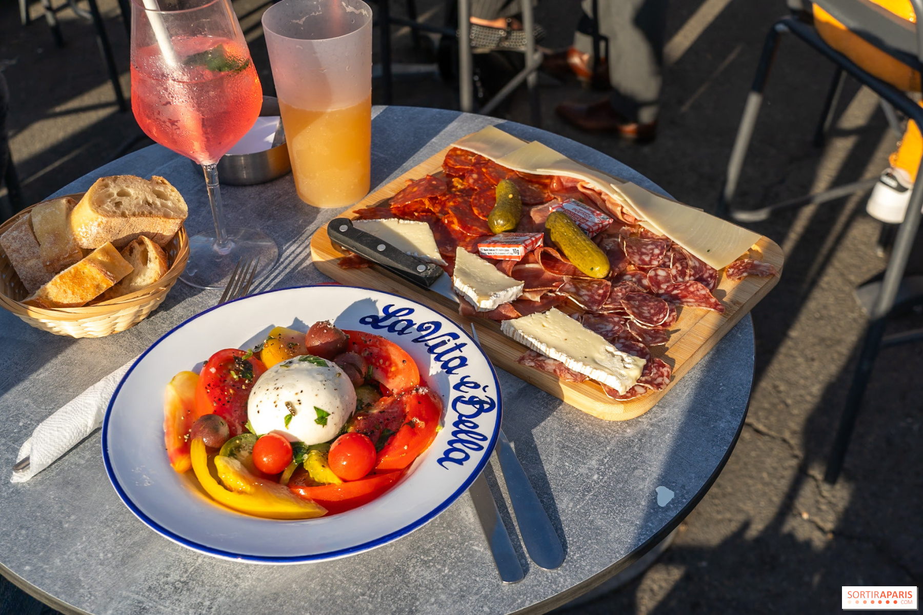 On the menu, nothing too complicated, but everything you need to enjoy a drink on the terrace: smash burgers, crab rolls, hot dogs and a fine selection of homemade spreads (hummus, tapenade, cream cheese peppers...) to munch on with friends. For gourmets or groups, there are charcuterie or mixed boards and small plates such as tomato burrata or vintage sardines. Prices are pretty reasonable: from €4.50 for fries to €16 for crab rolls, and between €8 and €12 for most small dishes. Drinks are served at happy hour, with pints at €5 (before 8pm) and well-executed house cocktails at around €10 to €12.