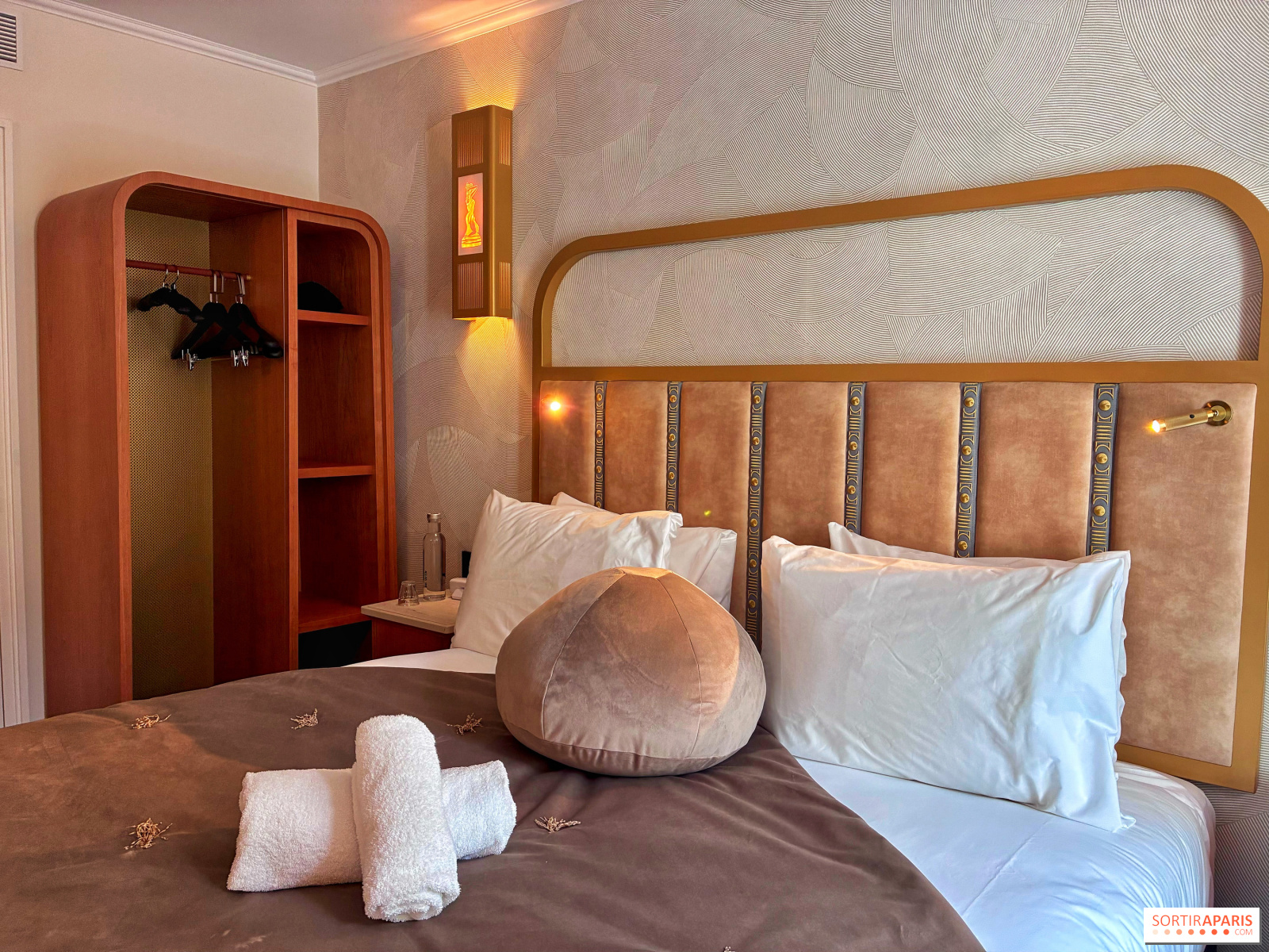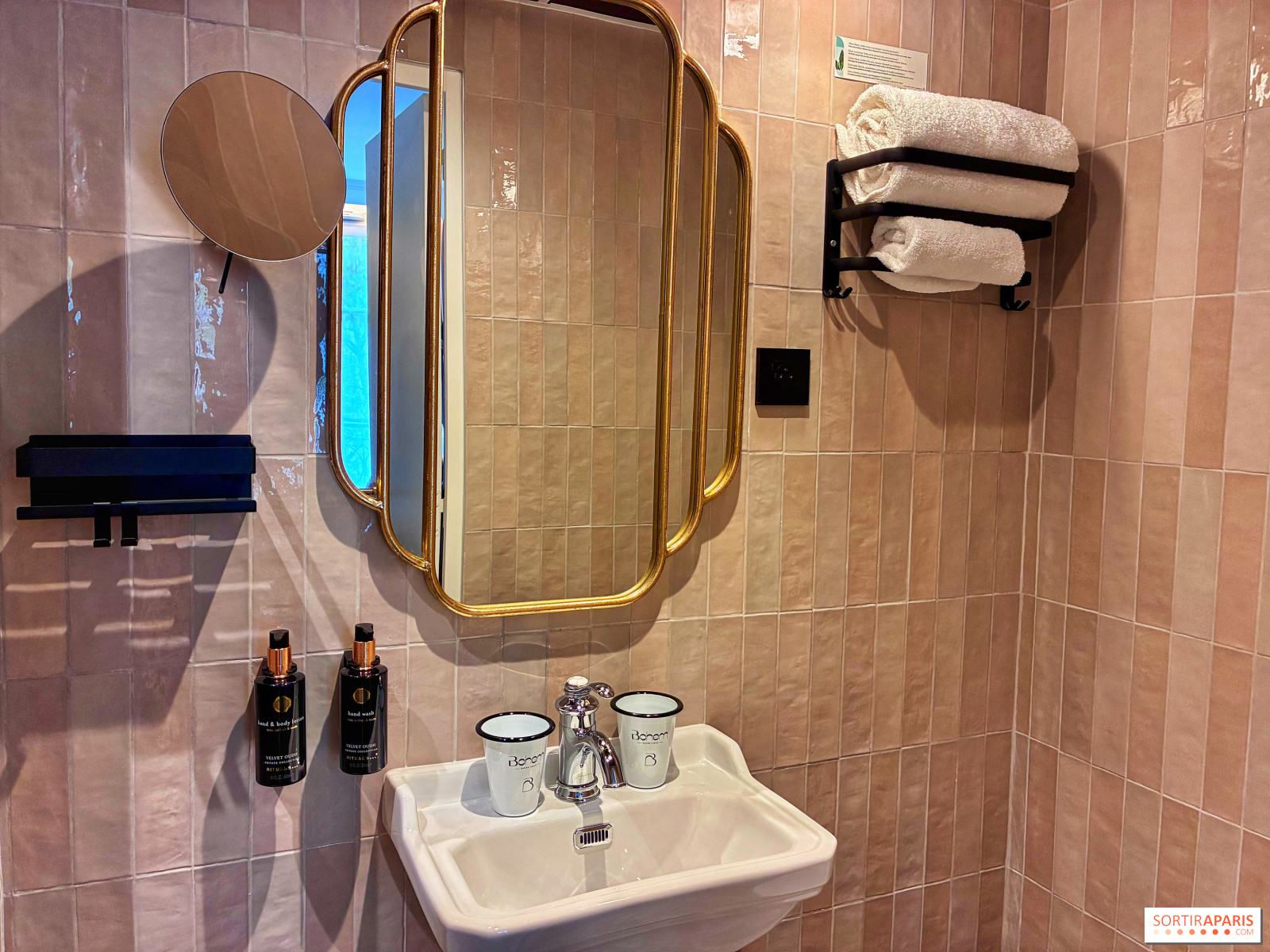 When it comes to the rooms, they are split into four colours (blue, black and gold, beige, or pink) corresponding to four categories, but all carry an Art Déco soul with a plush velvet headboard, geometric motifs, fixtures crafted by a ceramicist, and a tiled bathroom: Cozy, Classic, Deluxe and Prestige.