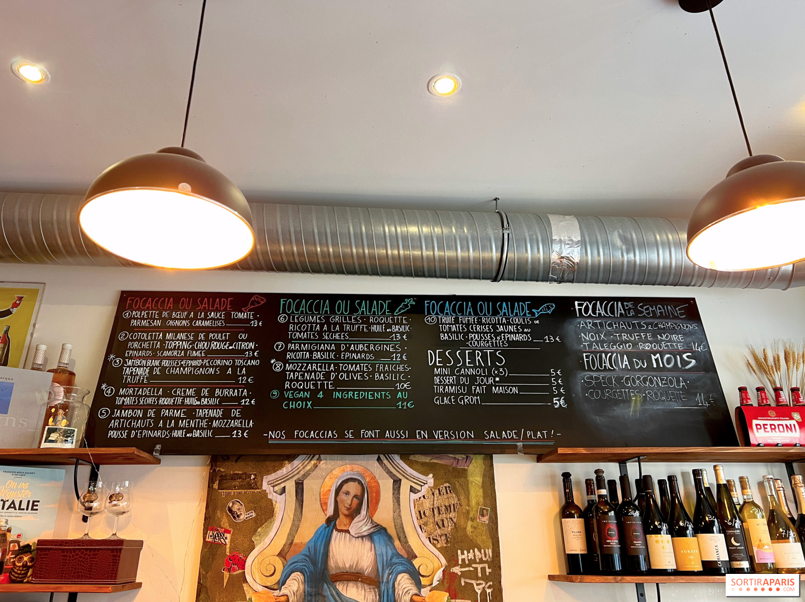 A few high chairs are available for on-site seating, whether indoors or on the small terrace. One thing is certain: Focaccia Mia stands out as a delightful Italian stop in the neighborhood, offering a true culinary respite.