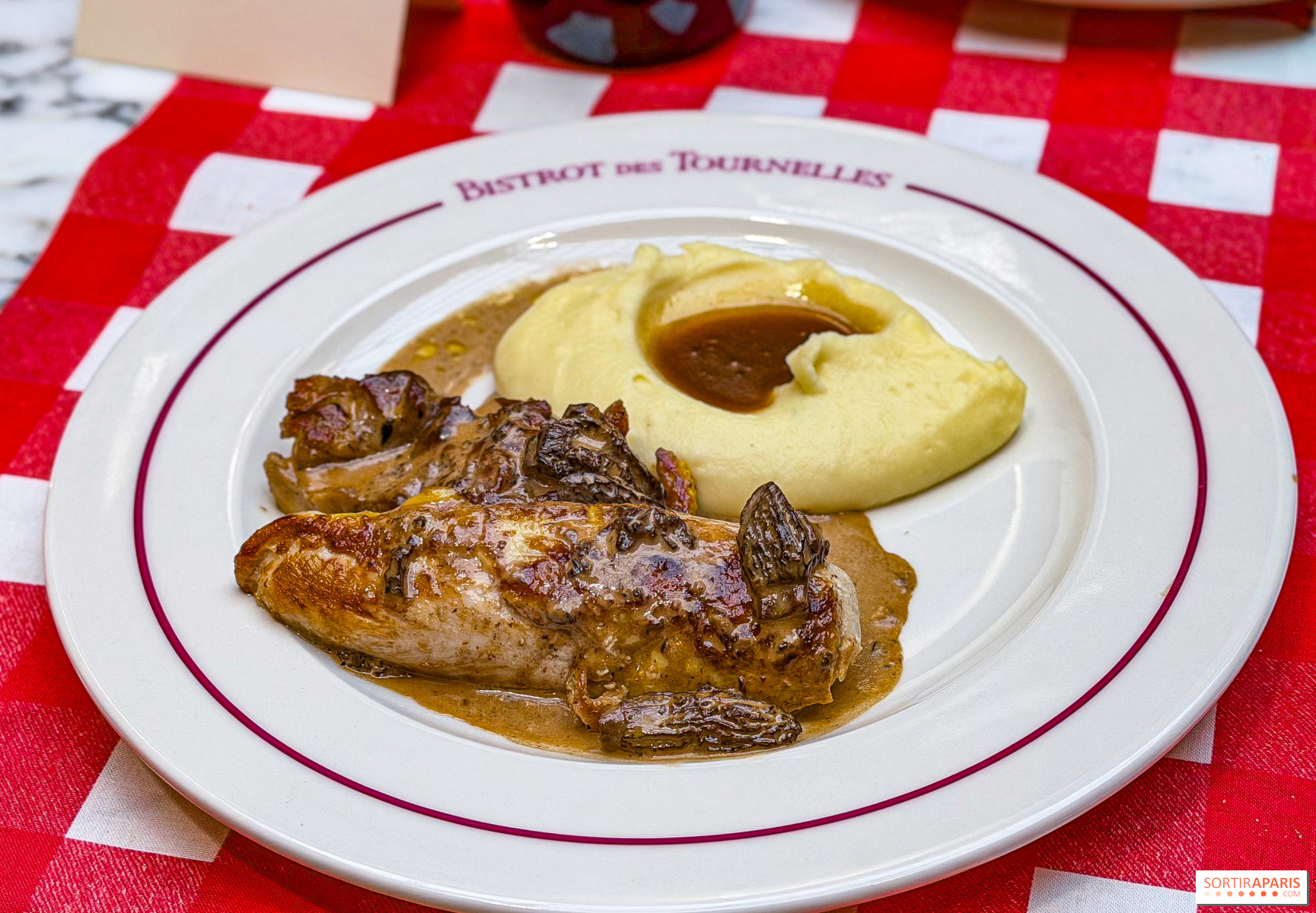 En el plato principal, dirección al Bistrot des Tournelles para disfrutar de una ave con salsa de vino amarillo y morillas, acompañada de su jugo y un fondo de pollo casero.