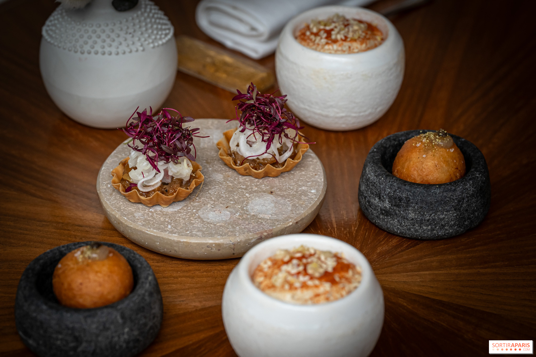Situado en la rue Bailleul, a dos pasos del Louvre, Granite ofrece una atmósfera íntima, a medio camino entre un precioso capullo y un ambiente cálido, donde profesionalidad y relajación van de la mano. Situado en una calle discreta, Granite es el marco ideal para las parejas que celebran una ocasión especial, los gourmets y los almuerzos de negocios. Su cocina, refinada y estética, se basa en productos de temporada, preparados con una precisión que va al grano, tanto visual como gustativamente. Los sabores están finamente cincelados y los platos logran un sutil equilibrio entre minimalismo y riqueza aromática.