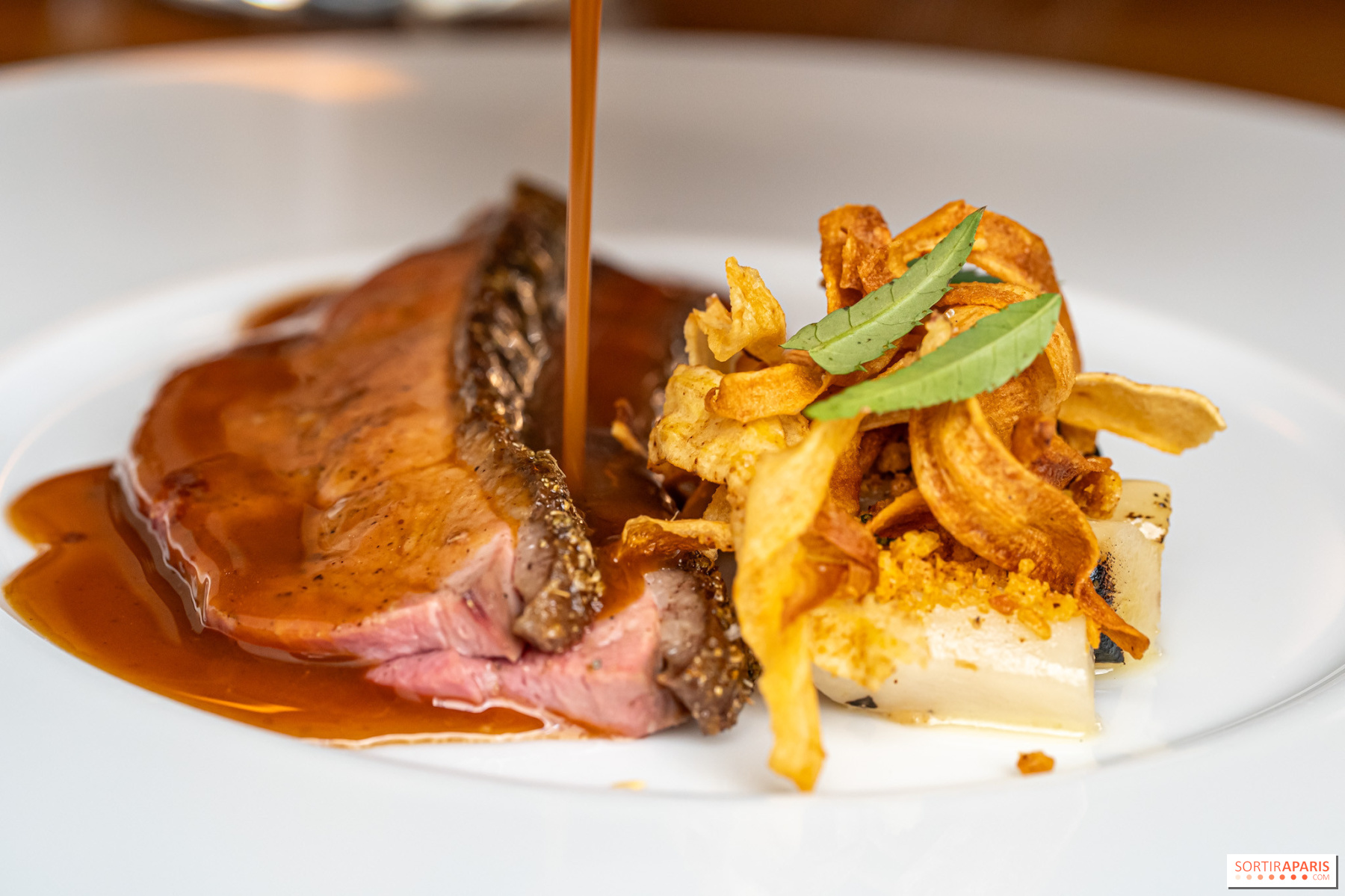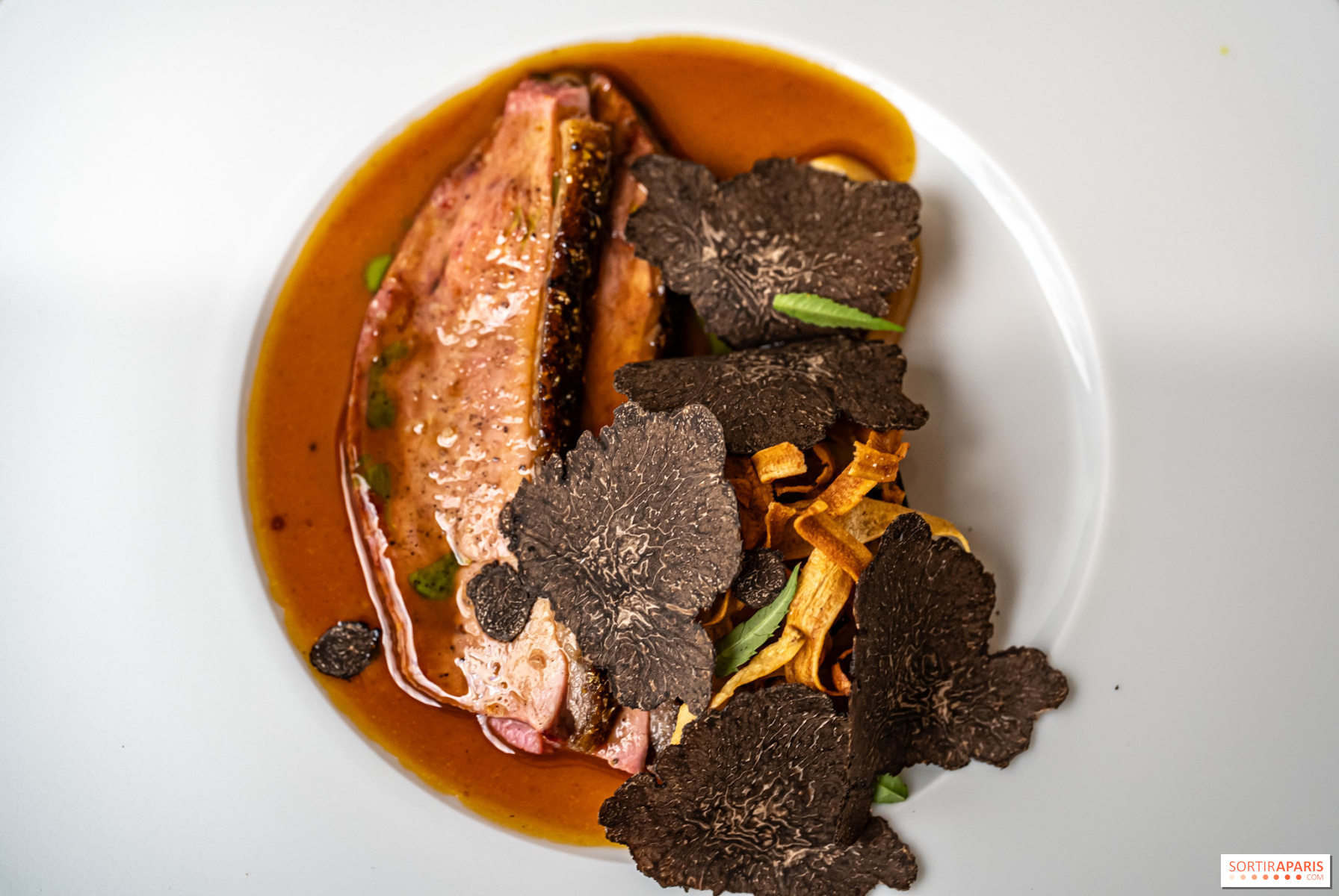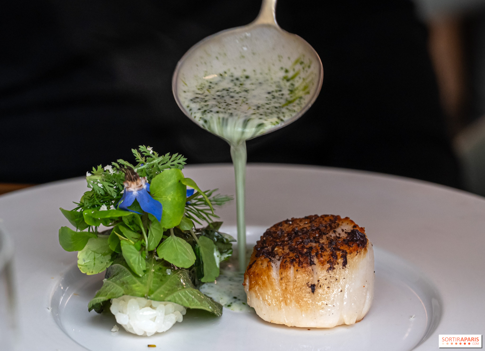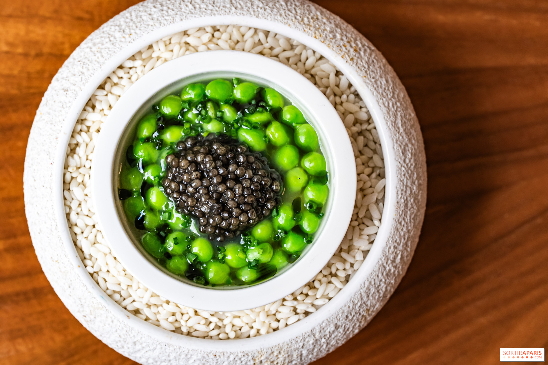 Los entrantes siguen ganando en intensidad: cangrejo desmenuzado con kimchi y velo de pomelo, caviar Baerii de Kasnodar servido con chawanmushi, divinos guisantes frescos y un caldo shimeji, o el tsukuné de ave de Bresse y foie gras , firma del chef, realzado con un condimento de ajo negro y granos de mostaza encurtidos. El efecto general es el de un trabajo en profundidad sobre salsas y condimentos, a veces tomando prestado de las tradiciones coreana y japonesa. Sabores picantes y sencillos, es una delicia.