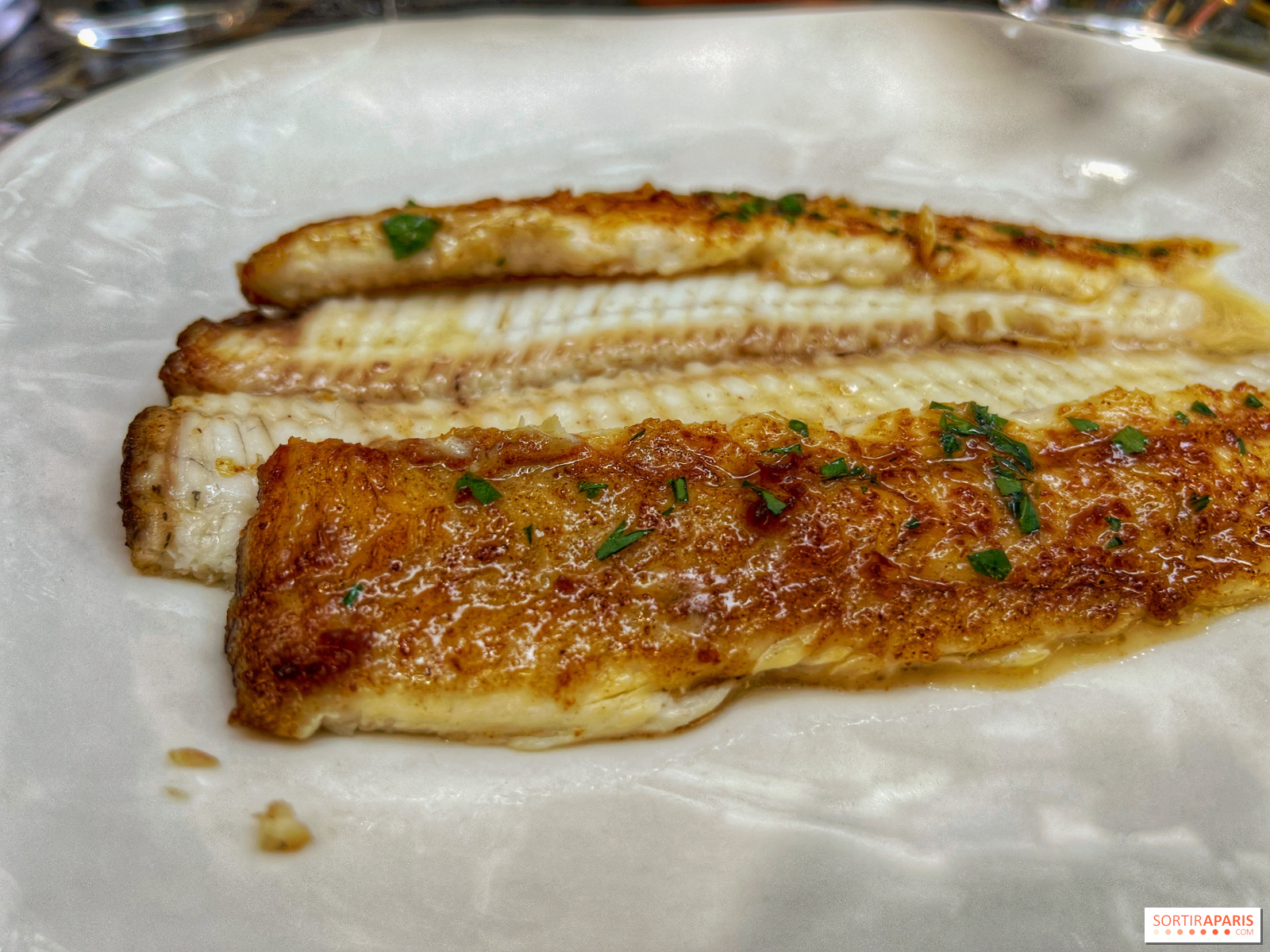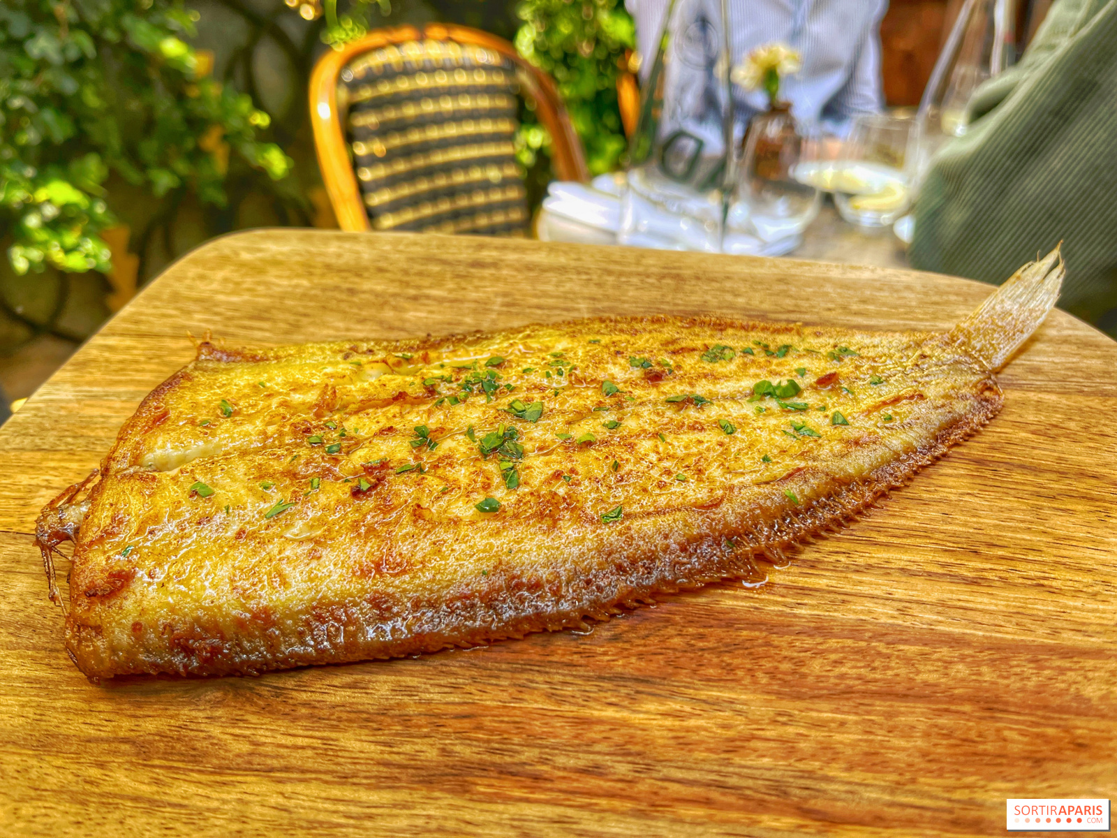 Junto al plato vegetariano, un lenguado meunière sencillamente divino, que sorprendentemente no cruje bajo los dientes y resulta suave y tierno con sabor a avellana, gracias a su salsa Grenobloise, que sazona delicadamente el pescado con su sabor dulce a mantequilla y limón.