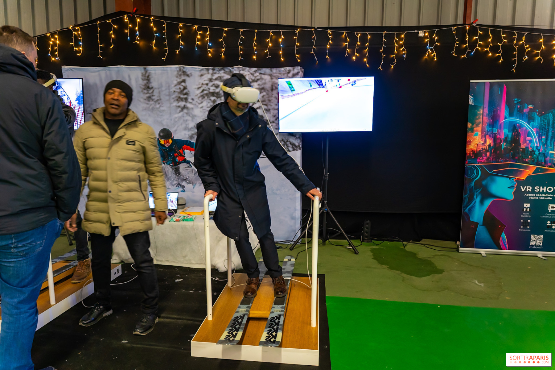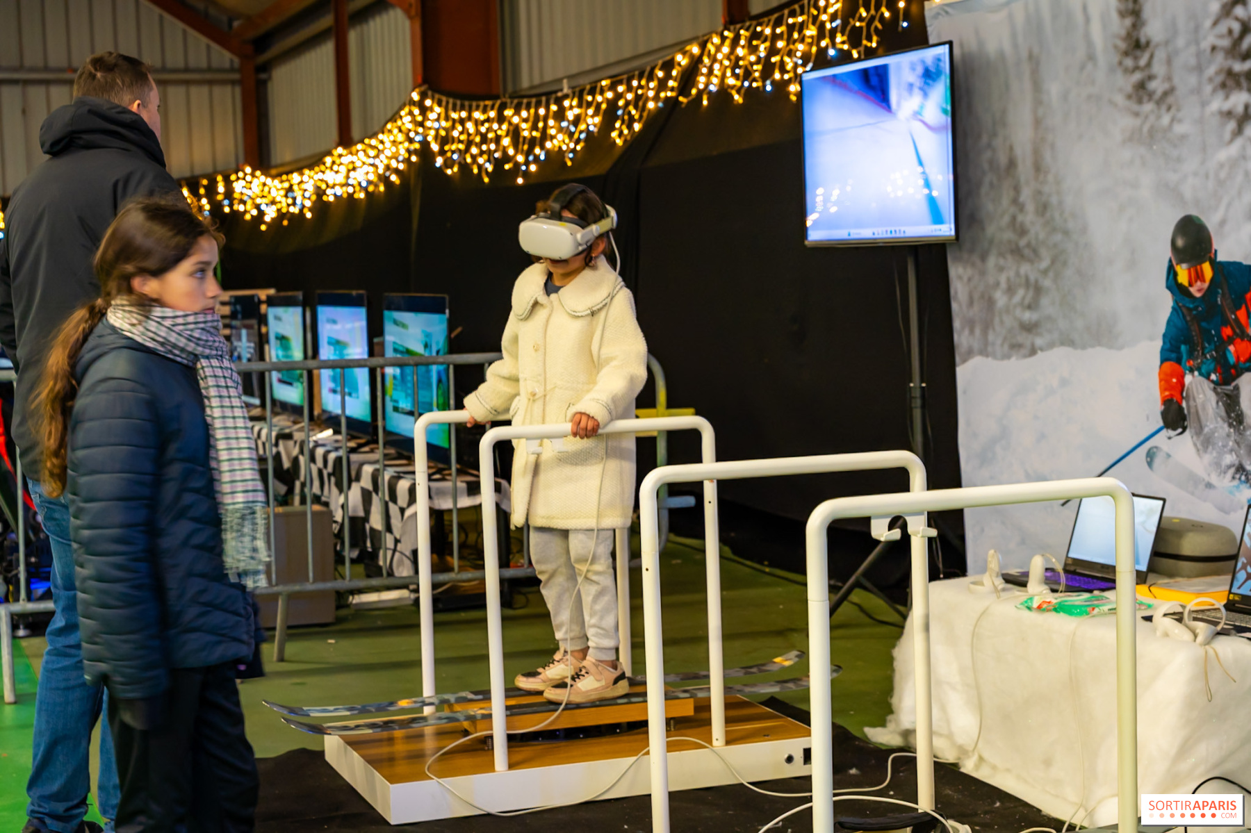 El pueblo nos recibe en un agradable ambiente invernal con sus tradicionales casetas blancas, donde los comerciantes y artesanos locales presentan sus creaciones. Nos sumergimos en el ambiente de los mercados navideños tradicionales con puestos que ofrecen productos locales, creaciones artesanales y especialidades gastronómicas. Es la ocasión perfecta para encontrar regalos originales o darse un capricho con alguna delicia. El espacio cubierto alberga una pista de patinaje de 200 m² que hace las delicias de grandes y pequeños, así como un espacio de realidad virtual para probar diferentes deportes de invierno como el esquí, el flybird y la conducción sobre nieve. ¡Y todo es gratis!
