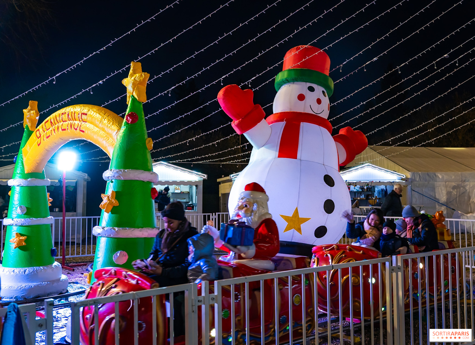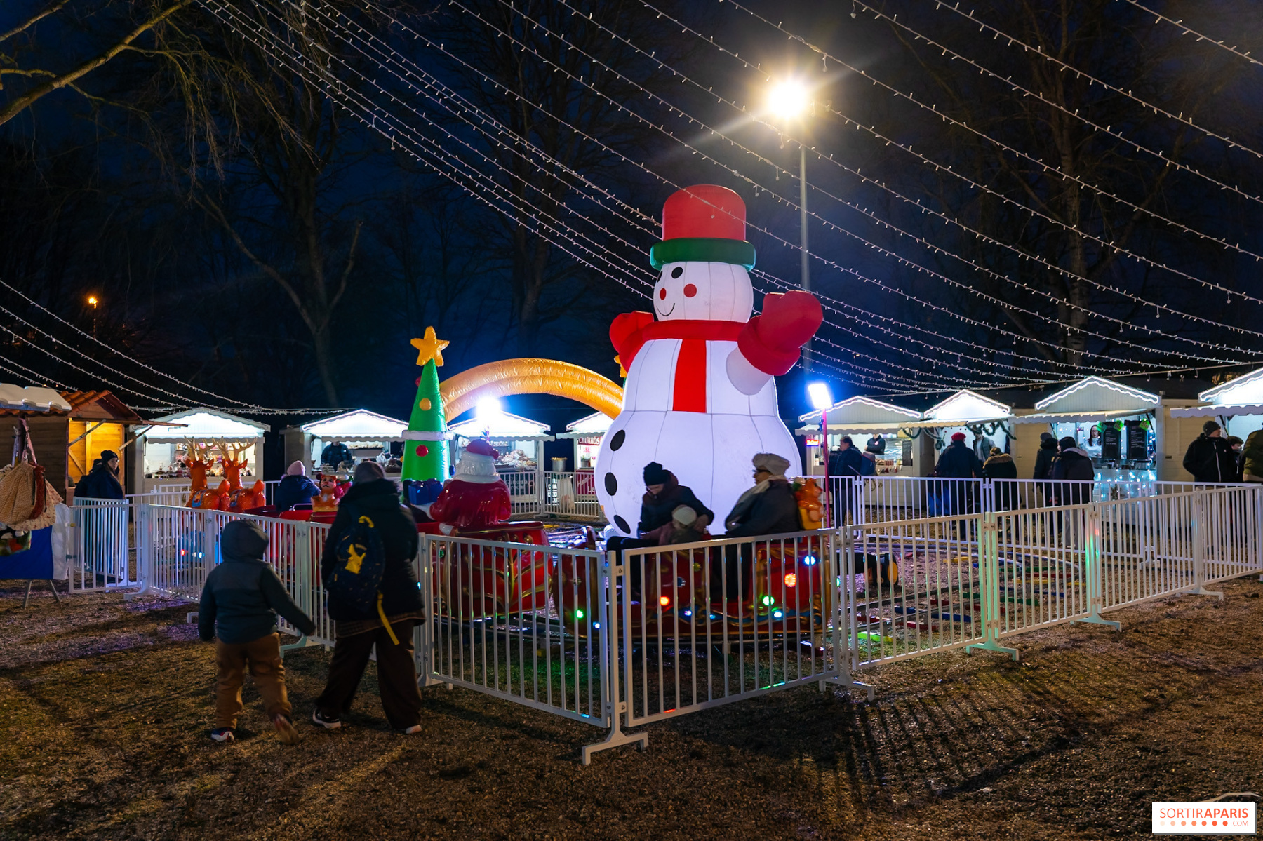 Los niños también pueden divertirse en el tiovivo de 14 m o subirse al trenecito luminoso que recorre el pueblo.