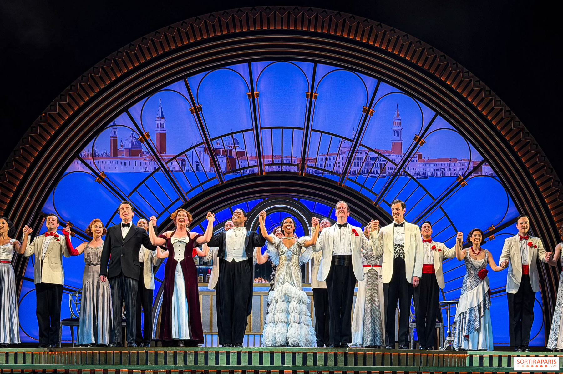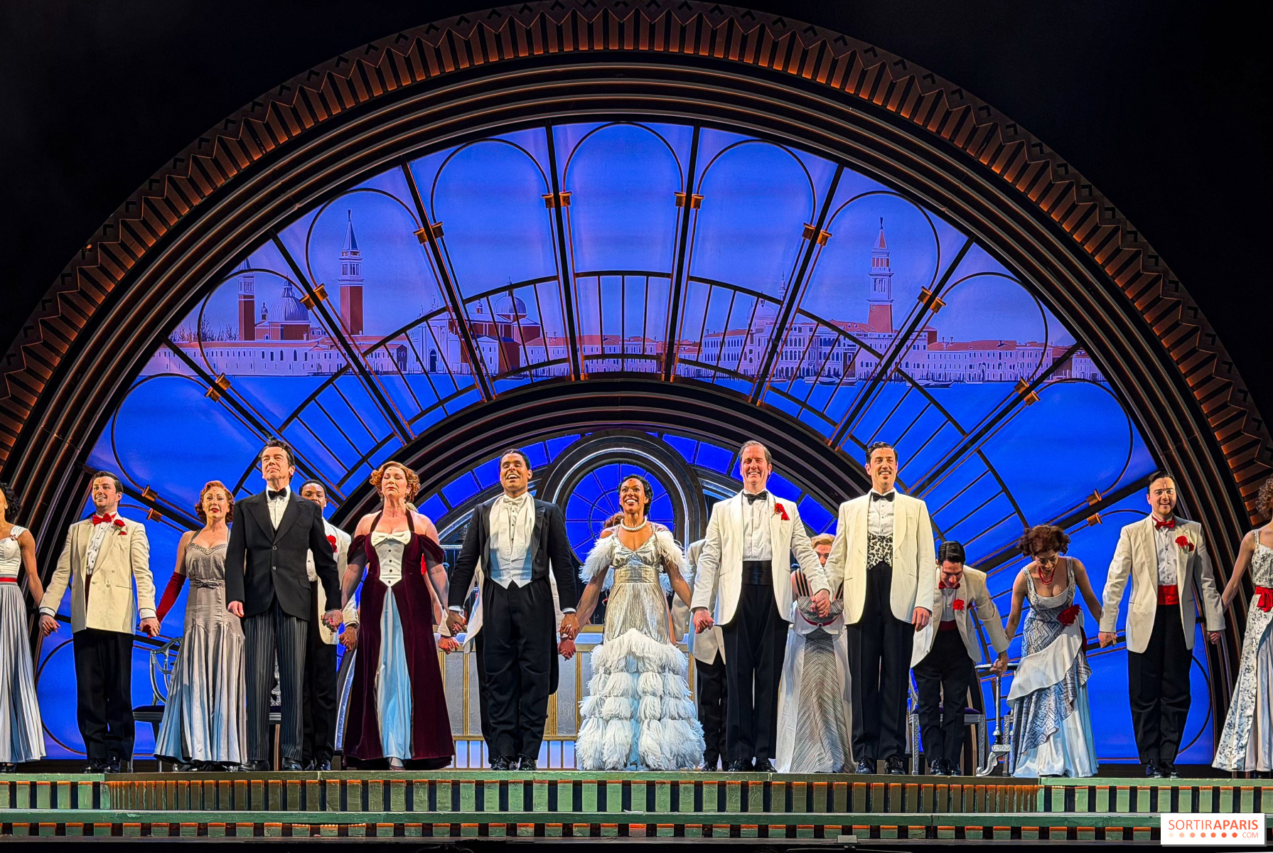 Primera escala en Londres: Nicole-Lily Baisden (Dale, magnética) y Philip Attmore (Jerry), dúo armonioso y elegante, dominan a la perfección el trípico canto-danza-claquettes. Luego rumbo a Venecia, donde el juego se despliega aún más: el tempo cómico se acelera, los secundarios roban protagonismo —mención especial a la pareja Madge–Horace, irresistible en sus réplicas verbales, al modista italiano deliberadamente caricaturesco Beddini, cliché perfecto de latin lover con humor, y al mayordomo Bates, deliciosamente picante.