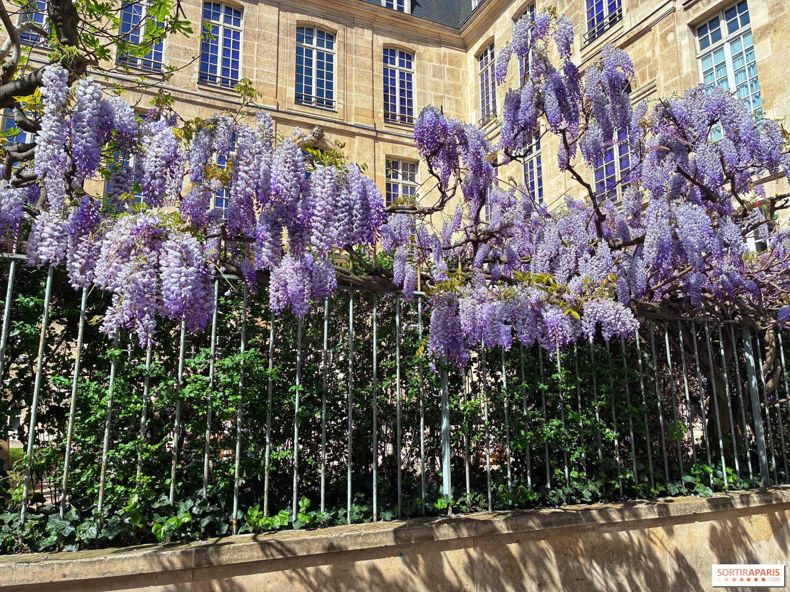 A continuación, nos adentramos en el Marais en dirección a la rue de Fourcy. Frente a la Maison Européenne de la Photographie, verás una glicinia asomando por la verja.