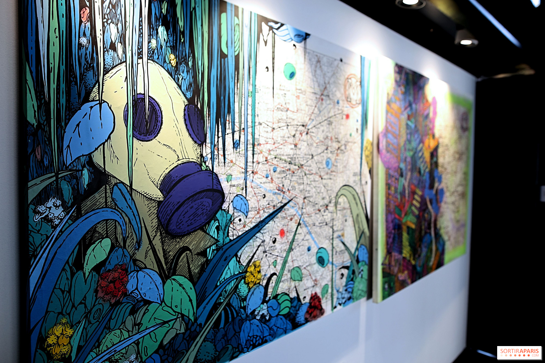 De esta manera, se invitó a todos a crear, usando como lienzo el plan del metro de París. Muy familiar para quienes utilizan el transporte público, este mapa es una herramienta esencial en la vida cotidiana. En esta exposición, titulada "En sus arterias fluye la vida", ese famoso plano del metro parisino se transforma en una superficie de expresión simbólica, donde el entrelazamiento de las líneas del metro, las curvas de la Sena y la variedad de lugares emblemáticos conforman la trama de sus obras.