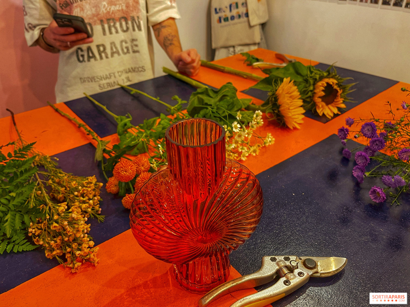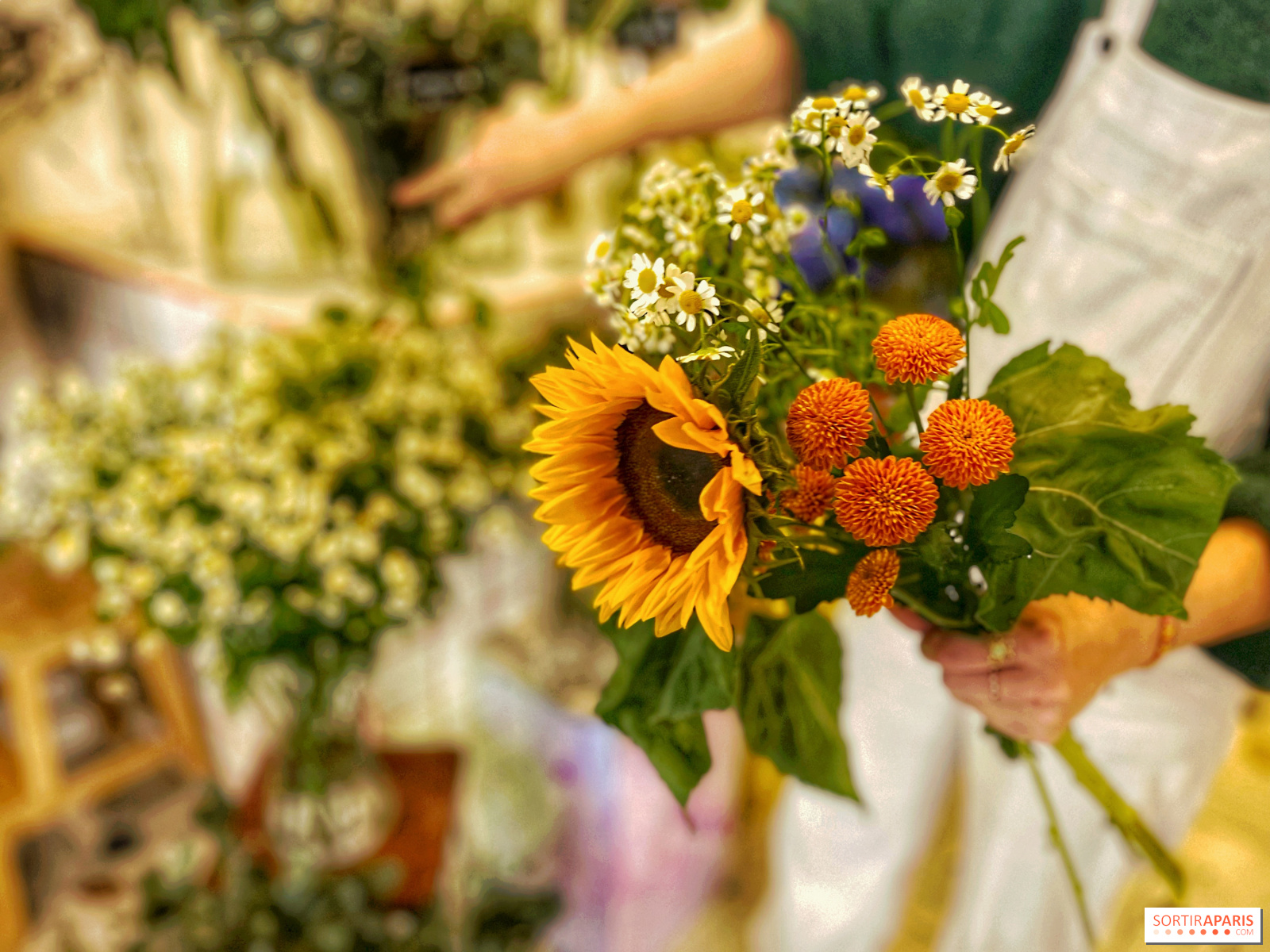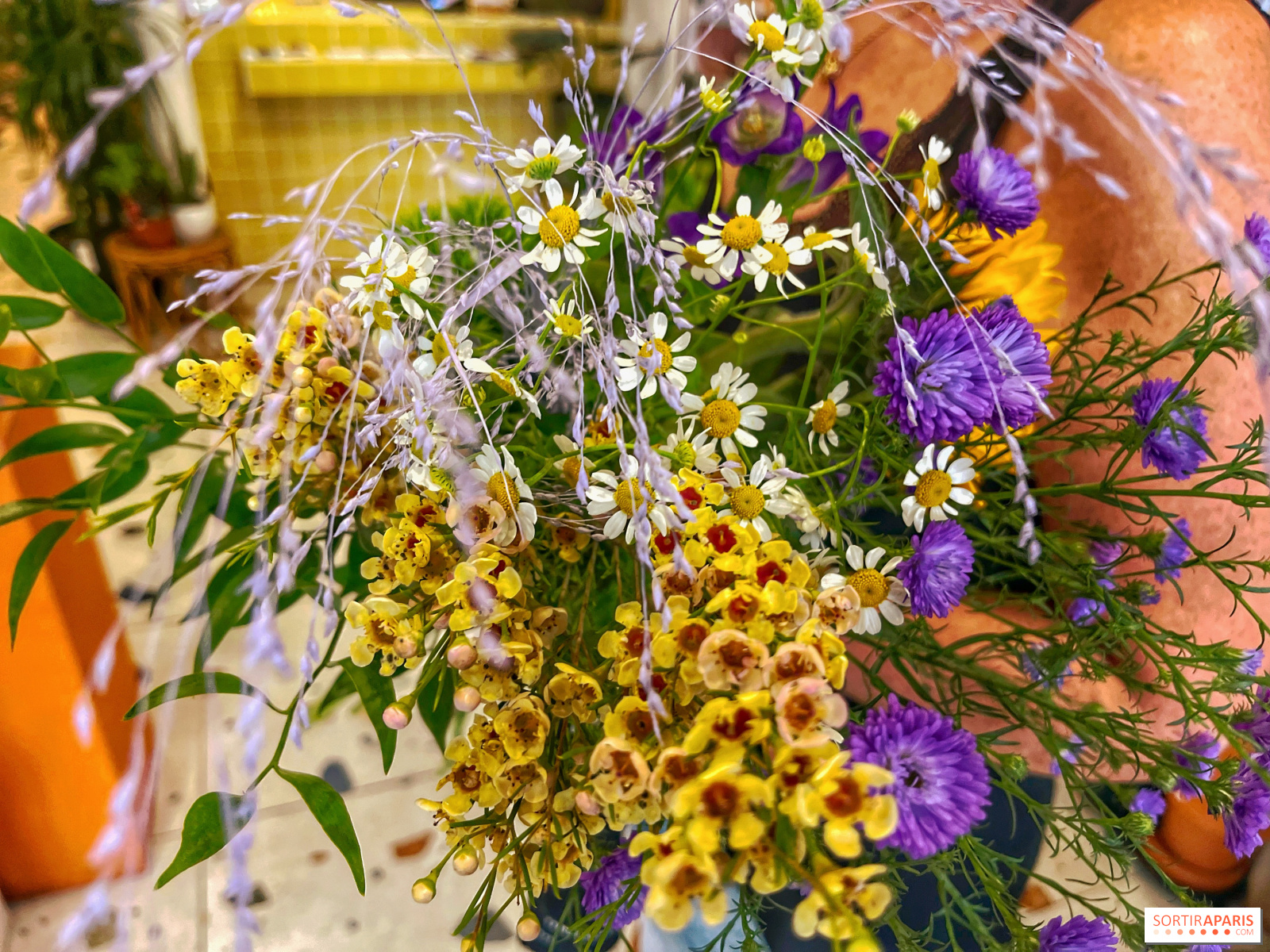 Me teeme varre viilutatud lõike, et lill saaks kergemini vett juua, ja me tasandame kõik, ennekui õpime, kuidas oma kimpu pakendada, et seda saaks Pariisi metroos transportida. See peab olema hästi kaitstud! Me valime oma paberivärvi, enne kui harjutame mäetehnikat, mida Camille demonstreerib humoorikalt, ja läheme koju rõõmuga, et oleme õppinud midagi uut ja jälgime seda oskusteavet kodus paar päeva (ja lilled püsivad kauem, võime teile kinnitada!).